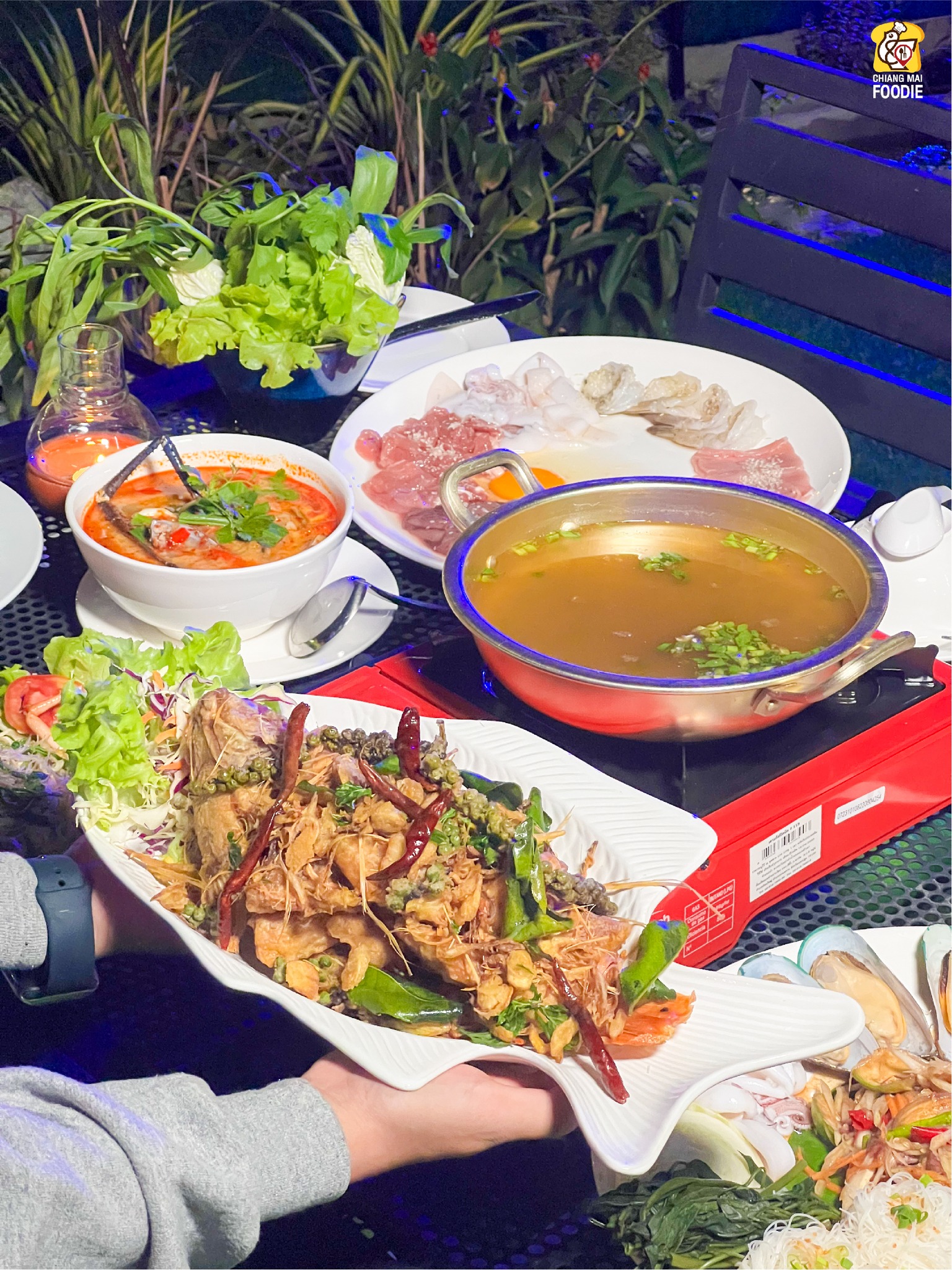 ร้านใหม่ แต่ฝีมือเชฟนี่คือเด็ดดวงพ่วงความเก๋ามาเลยนะ ดีทุกจาน อย่างหมูจุ่มนี่คือเป็นเซท #ชาบูลาวน้ำข้นๆ นัวๆ จิ้มกับน้ำจิ้มสามรส กับแจ่วคือเด็ด (มีน้ำจิ้มสุกี้ให้ด้วยนะสำหรับคนไม่ชอบเผ็ด) วัตถุดิบคือสดดี กุ้งตัวใหญ่เนื้อแน่น ว่าถึงเรื่องกุ้ง #กุ้งซอสมะขาม เค้าก็อร่อยถูกปาก #ปลาทับทิมทอดสมุนไพร คือเนื้อดีหวานเสิร์ฟมากับน้ำจิ้มสามรส
