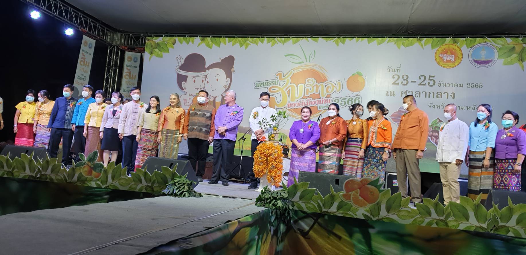 เมื่อวันที่ 23 ธันวาคม 2565 เวลา 19.00 น. ณ บริเวนศาลากลางหลังเก่า ตำบลในเวียง อำเภอเมืองน่าน จังหวัดน่าน นายวิบูรณ์ แววบัณฑิต ผู้ว่าราชการจังหวัดน่าน เป็นประธานพิธีเปิดงานมหกรรมส้มสีทองและของดีเมืองน่าน โดยมี นางศิริวรรณ วงค์หนัก ท่องเที่ยวและกีฬาจังหวัดน่าน กล่าวรายงาน โดยกลุ่มเป้าหมายกิจกรรม “มหกรรมส้มสีทองและของดีเมืองน่าน” ประกอบด้วย เกษตรกรผู้ปลูกส้มสีทอง เกษตรกรในพื้นที่จังหวัดน่าน ผู้ประกอบการด้านการท่องเที่ยวเชิงเกษตร กลุ่มแปรรูปสินค้าและผลิตภัณฑ์การเกษตรชุมชนจังหวัดน่าน และผู้ประกอบการท่องเที่ยวชุมชนจังหวัดน่าน และกลุ่มสินค้า OTOP เพื่อเพิ่มขีดความสามารถด้านการแข่งขันให้กับการท่องเที่ยวน่าน มุ่งสู่การท่องเที่ยวคุณภาพสูง