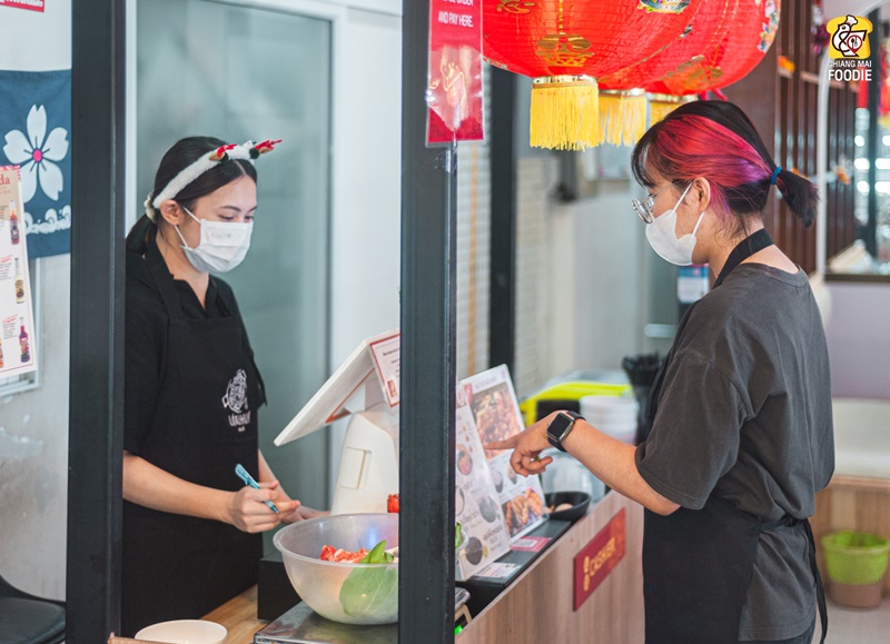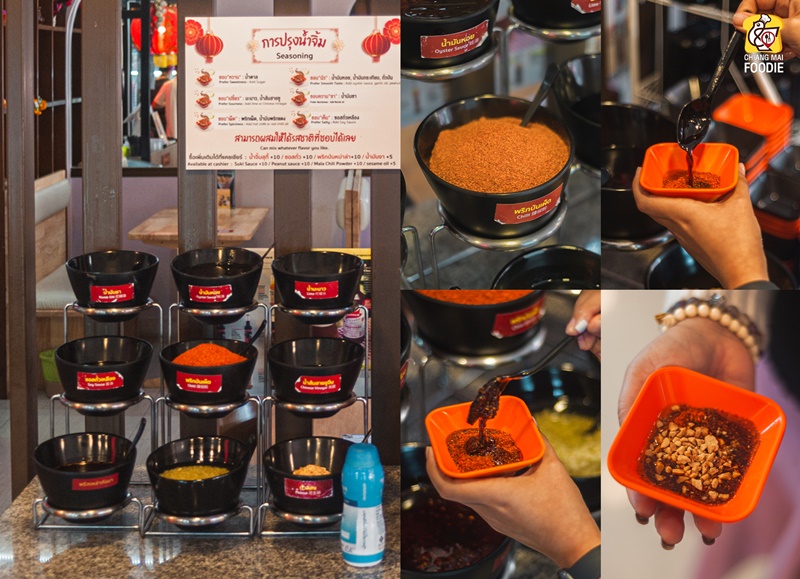 มีของทอปปิ้ง ให้เลือกเยอะมากกก 2 ตู้แน่นๆ 60 อย่าง สำหรับใครที่กลัวเสื้อเปื้อน ร้านเค้ามีผ้ากันเปื้อนให้ด้วย เริ่มกันเลย!! คว้าชามใหญ่พร้อมที่คีบ เลือกหยิบกันรัวๆ แล้วไปชั่งคิดตังค์ เลือกน้ำซุป มีให้เลือก 5 แบบหม่าล่าดั้งเดิม ซุปหม่าล่านม ซุปนม ซุปโชยุน้ำดำ ซุปเห็ดหอมเจ เลือกเลเวลความเผ็ดได้ อย่างหม่าล่าต้นตำรับถ้าไม่ต้องแชร์กับน้องๆ กิน เจ่เจ้แอดมินจะขอเลือกแบบเผ็ชชชที่สุดไปเล้ยย