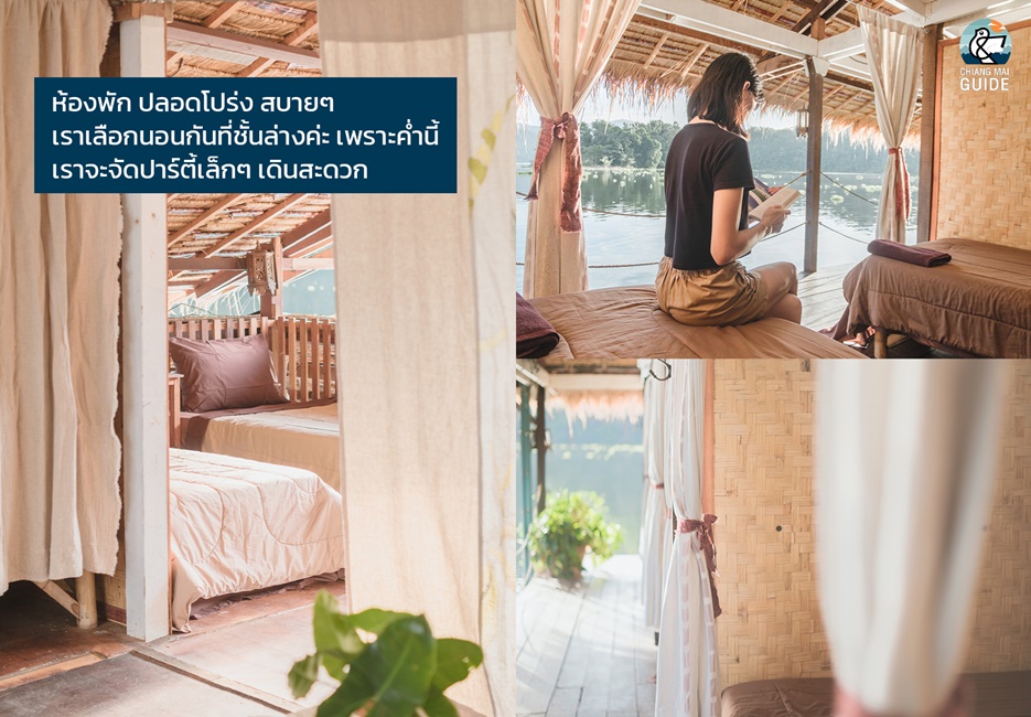 เห็นจากเพจเค้าครั้งแรก นึกว่าเป็นแพสไตล์สายมูที่เน้นไปโยคะ นั่งสมาธิ แต่ไม่ใช่อะ ทักไปหาเพจเค้า สอบถามไปสอบถามมา ก็เฮ้ยย! ได้นะ แก๊งค์เราคุณภาพทุกหยดอยู่แล้ว เป็นที่พักแบบแพที่อยู่ในเขื่อนแม่งัด อำเภอแม่แตง ไม่มีรถไปเองนะ ..ซื้อทริปแล้ว ที่พักเค้าจัดการให้หมด (อันนี้คือเอารถไปเองก็ได้ แต่รสชาติของชีวิตเราต้องมาเวย์นี้เว้ยย)