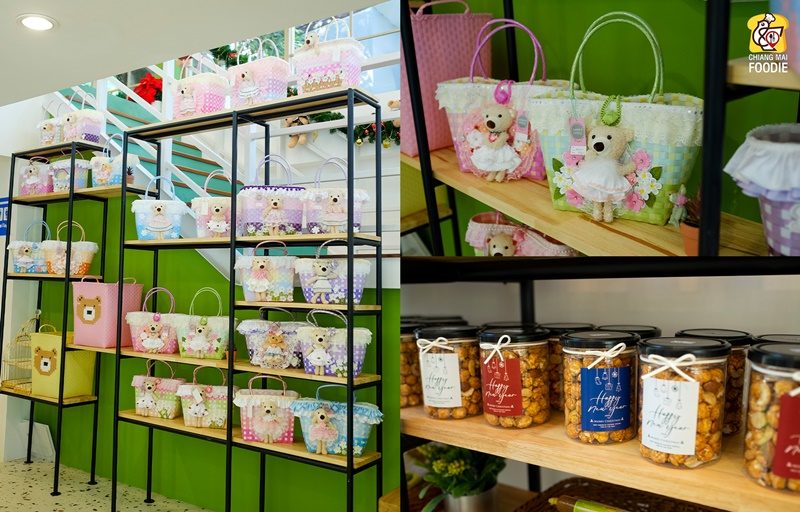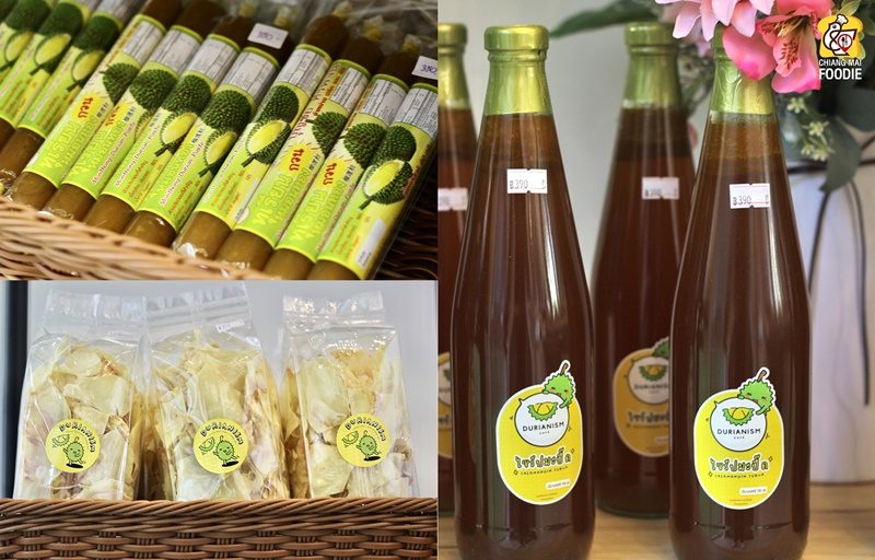 นอกจากนี้ ยังมีมุมขนมของฝาก อย่างทุเรียนทอด สาหร่ายทุเรียนทอด คุกกี้ทุเรียน ทุเรียนกวน น้ำมะปี๊ด (ส้มจี๊ด) และกระเป๋าสานสุดน่ารักจากร้าน แม่แนนกระเป๋าสาน