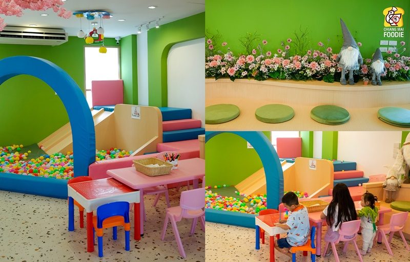 ตัวร้านเค้าตกแต่งโทนสีเขียวมีกิมมิกน่ารักๆ ทั่วร้านเลย บอกเลยว่าเป็นคาเฟ่ที่สวยหรูน่ารักใน 1 เดียว มีที่จอดรถเป็นส่วนตัว มีมุมเด็กเล่น และสนามเด็กเล่นด้วยอะ ประทับใจแอดมินสุดๆ