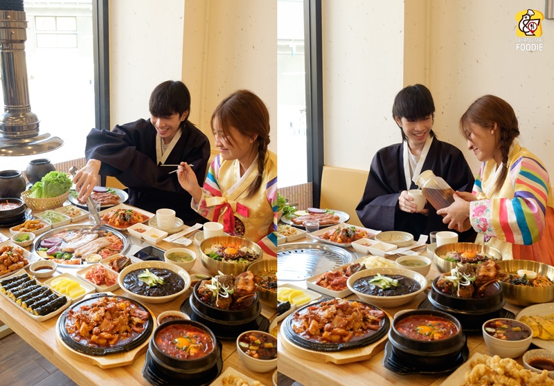 ความอร่อยแบบเกาหลีเกาใจ สไตล์หนุ่มสาวกรุงโซลต้นตำรับ ตัวร้านเค้าออกแบบมาดูปลอดโปร่ง มีโต๊ะให้เลือกอยากลองเซทโต๊ะนั่งพื้น ให้อินแบบเกาหลีก็ได้น๊า กลัวอินไม่พอ แอดมินเจ่เจ้เลยพาน้องๆ แต่งชุดฮันบกสร้างบรรยากาศซะเลย ใครที่อยากอิ่ม อิน ฟิน ก็มาจัดได้เลยนะ มีบริการให้ลูกค้าที่มาทานอาหารได้สวมฟรี