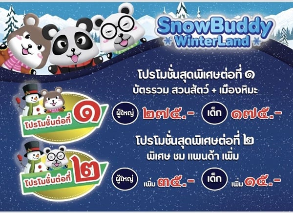 โดยการจำลองหิมะเทียมตกเหมือนจริง และสนุกไปกับบรรยากาศเมืองหิมะพร้อมอุปกรณ์สไลเดอร์หิมะ และสนุกไปกับการเล่นปั้นหิมะ เพลิดเพลินกับเกล็ดน้ำแข็ง มีการจัดชุดอุปกรณ์ให้เล่นอย่างสนุกสนาน เพิ่มเติมความคุ้มค่าในการเที่ยวชมเมืองหิมะเพียง ภายใน “Snow Buddy Winter Land” @Chiangmai Zoo ที่พลาดไม่ได้แวะมาเยี่ยมชมหมีแพนด้า “หลินฮุ่ย” ภายในส่วนจัดแสดงหมีแพนด้ากันด้วยและพิเศษสุดๆกับสวนน้ำสำหรับเด็กที่เปิดให้น้องๆ หนูๆ ได้มาเล่นน้ำคลายร้อนกัน ซึ่งจะเปิดให้เข้ามาเล่นสนุกกันช่วงสงกรานต์นี้เท่านั้น