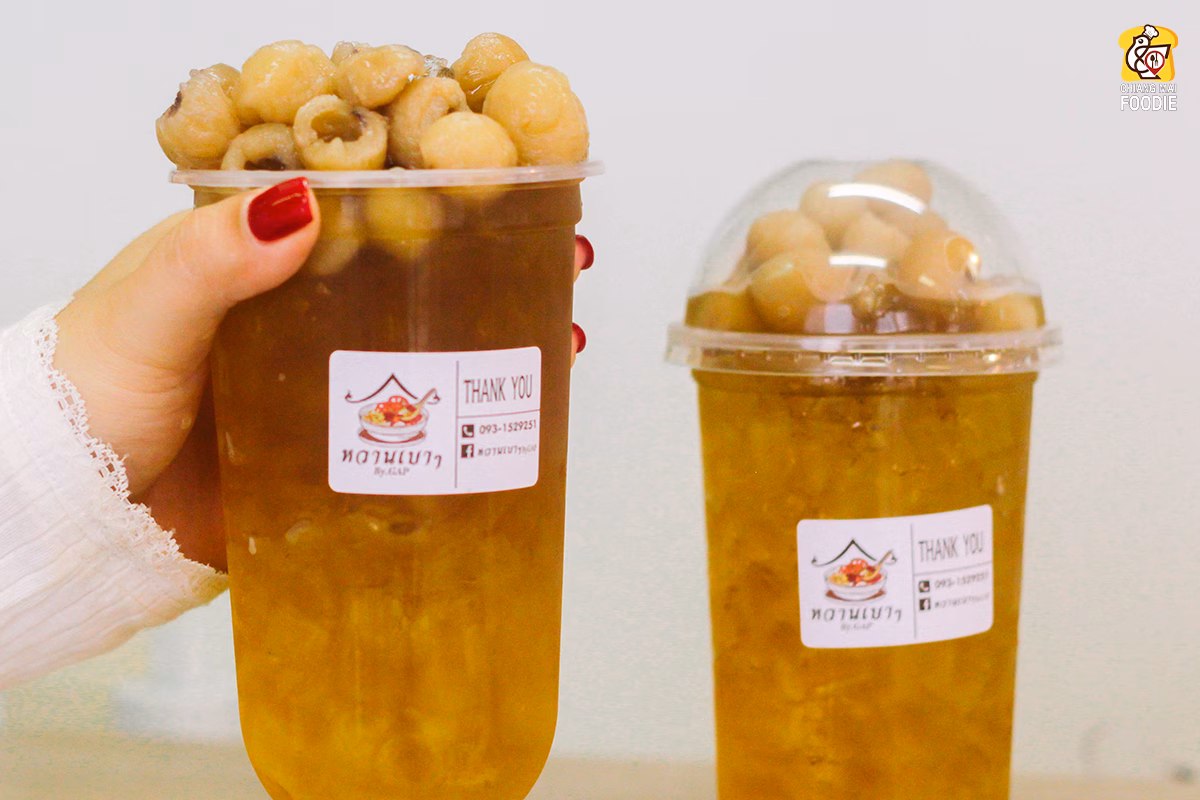 เครื่องดื่มซิกเนเจอร์ของร้านนี้ เป็นน้ำลำไยสูตรเฉพาะมีความหอมใบเตยชื่นใจ ใช้ลำไยสีทองของดีเมืองลำพูนมาทำ ในร้านไม่มีเฉพาะขนมหวานทอปปิ้งล้นๆ แบบไทยๆ เท่านั้นนะ ยังมีเมนูขนมอบอร่อยๆ ด้วย ร้านนี้เค้าถนัดเรื่องขนมจริงจัง แอบไปเปิดตู้ มีทั้งเค้กกล้วยหอม บราวนี่เนื้อฟัดจ์หนึบๆ เค้ก ลูกตาลลอยแก้ว พุดดิ้งนมสด ราคาไม่แรงด้วย