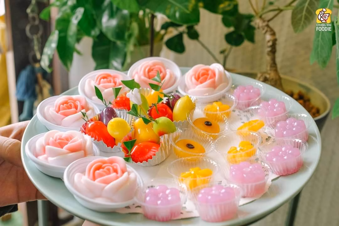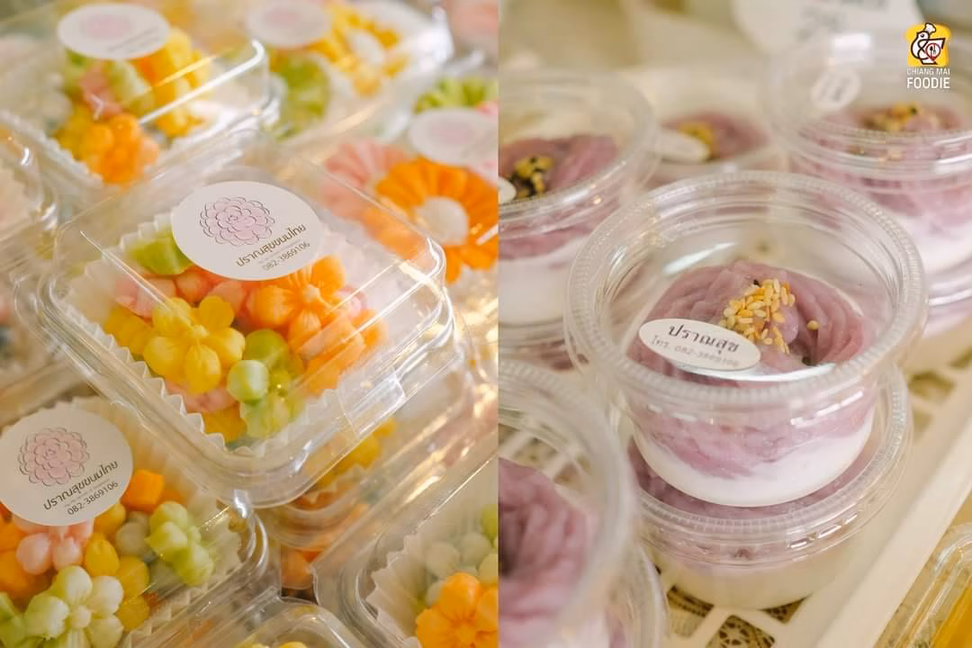 #Chiangmaifoodie #ทองหยิบ #ทองหยอด #อาลัวดอกไม้ #เปียกปูนมันม่วง