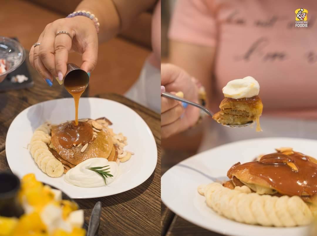 เเพนเค้กสูตรพิเศษของทางร้าน ที่นู่มมมมม หอม รับรองเลยว่าฟิน ทานคู่กับกล้วยหอมที่เสริมรสชาติได้แบบเข้ากันสุดๆ เวลาตักเข้าปากพร้อมกันคือมันดรียย์