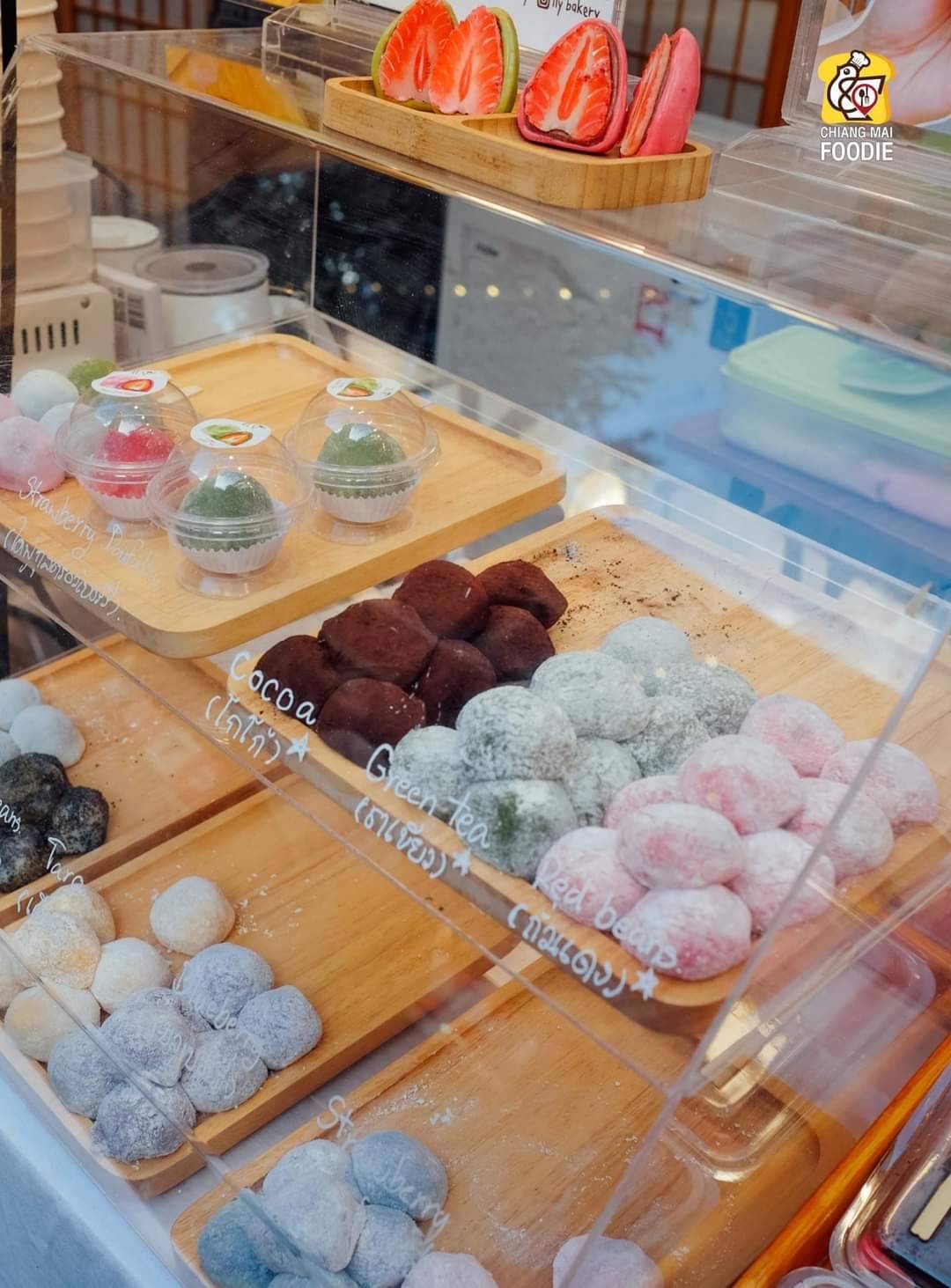 ไดฟูกุ ily bakery คิวท์โตะสุดๆ ต้องยกให้ร้านนี้เลย เป็น #ไอติมห่มผ้า ไอศกรีมเจลาโต้ที่ถูกโอบด้วยแป้งโมจิเหนียวนุ่ม ทอปด้วยสตอเบอรี่สด น่ารักสุดคิวท์มั่กๆ พร้อมด้วย อีกหนึ่งของใหม่ #โมจิดิปครีมชีส และแครกเกอร์ หรืออัลมอนต์ในเซท อร่อยกรุบ