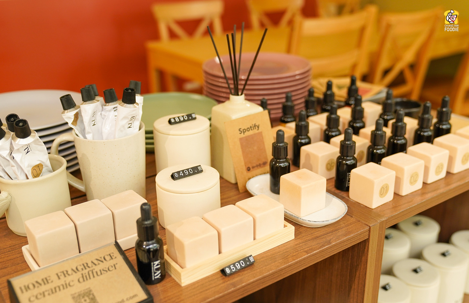 ในร้านยังมี Ceramic diffuser ไอเท่มคูลๆ ที่สาวกอโรมาต้องชอบ นอกจากนี้ยังมี แฮนด์ครีม และน้ำหอมอโรมาให้เลือกสอยกลับบ้านด้วยนะ