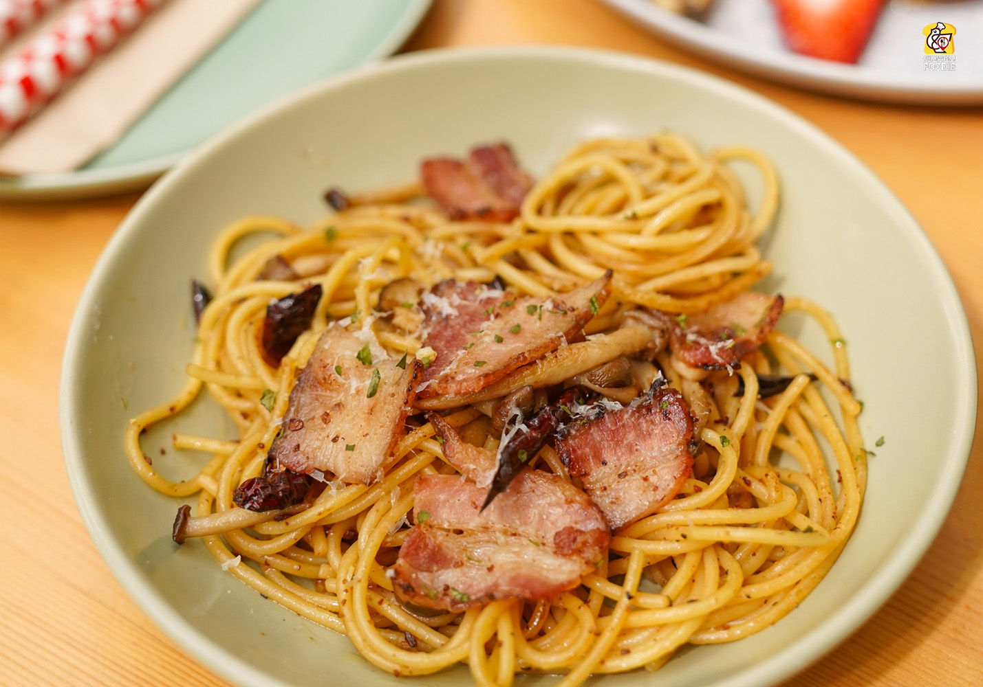 หรือมื้อสายแบบจัดหนัก สปาเก็ตตี้พริกแห้งเบคอน
