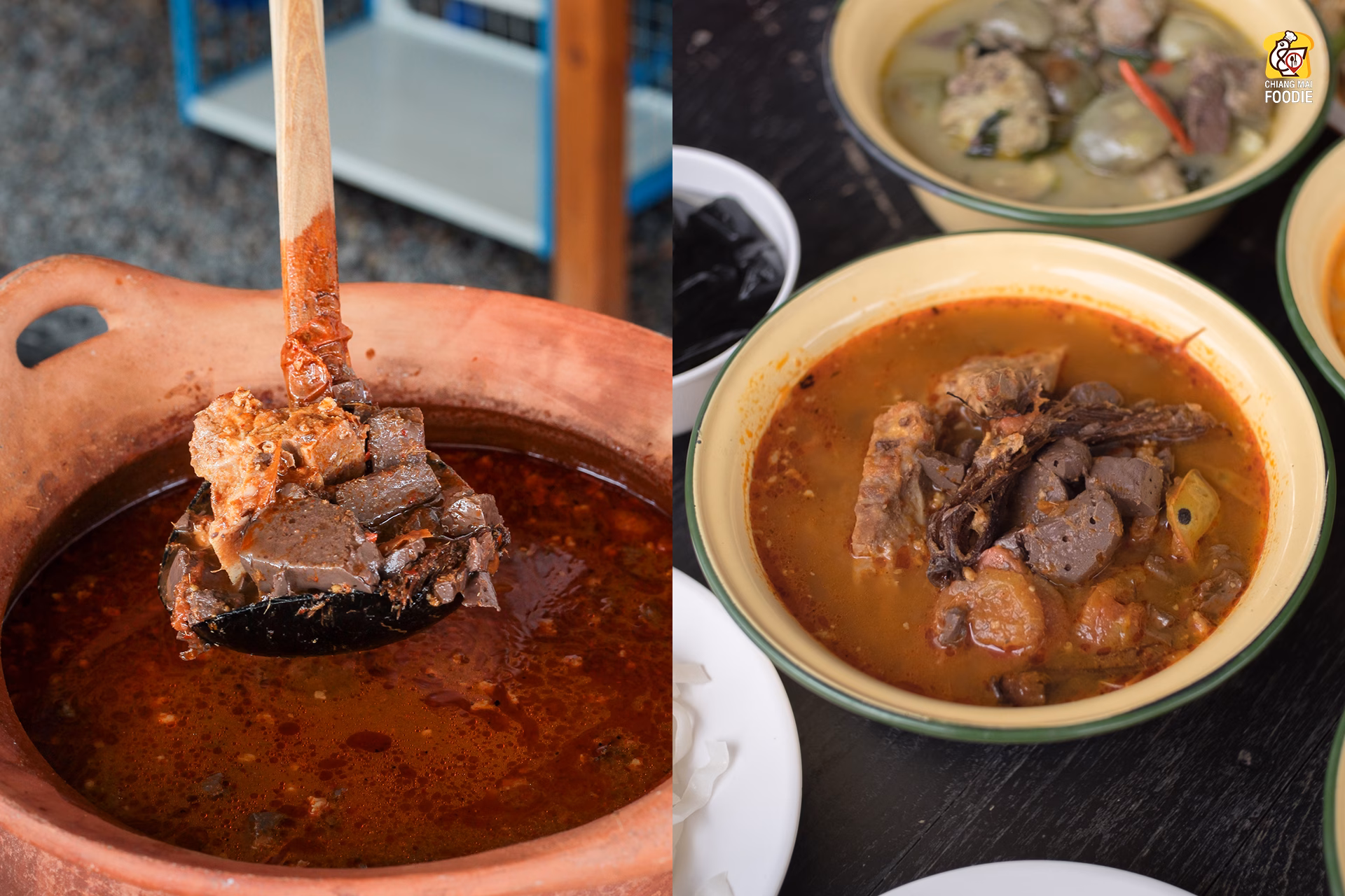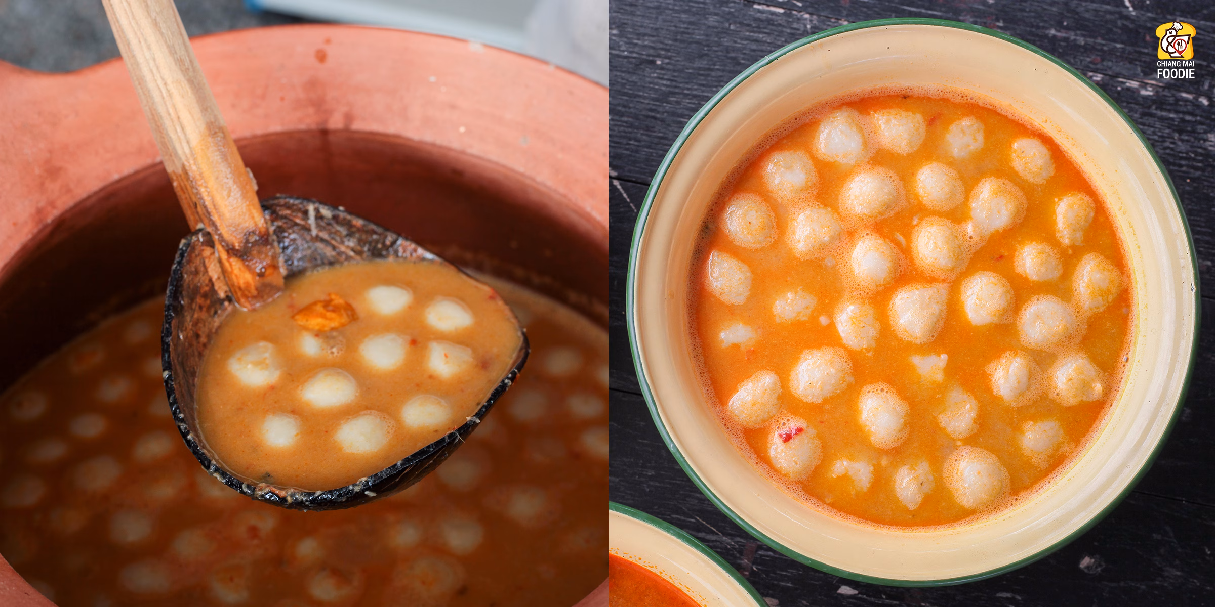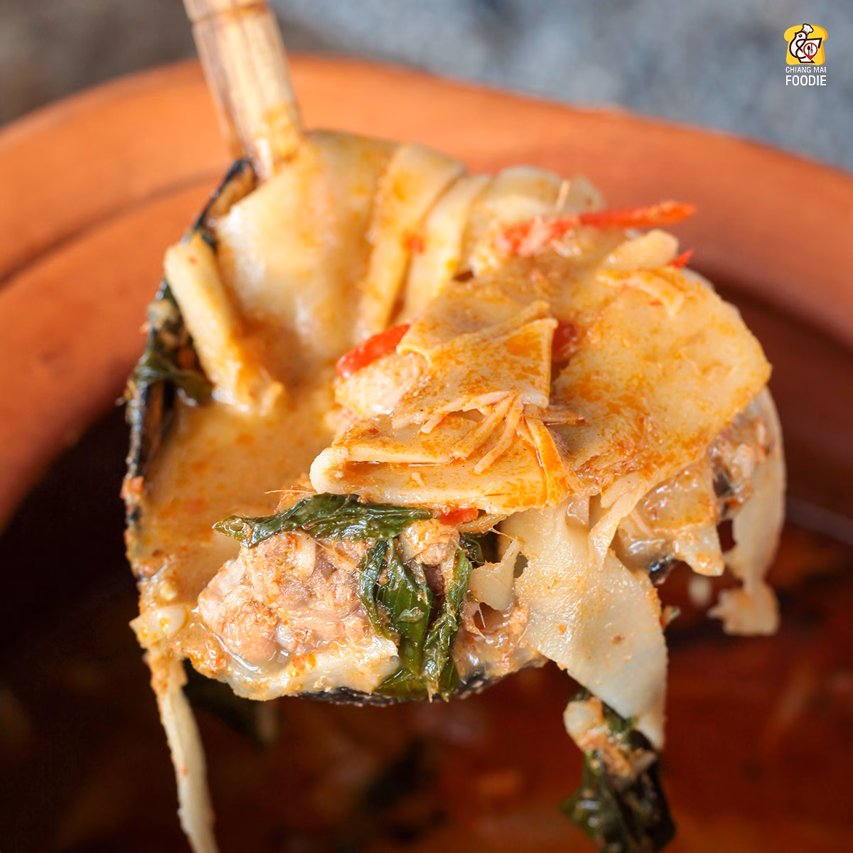 อยากจุก ก็มาร้านนี้ ….จุกที่หมายถึงว่าให้เยอะะะะ อิ่มจนกั๊ดแน่นอน ตักไปหม้อไหนก่อมีก้าจิ้น มีให้เลือก 5 น้ำ น้ำเงี้ยว น้ำยา เขียวหวานไก่ แกงหน่อไม้ใส่ไก่ และน้ำยาป่าตีนไก่