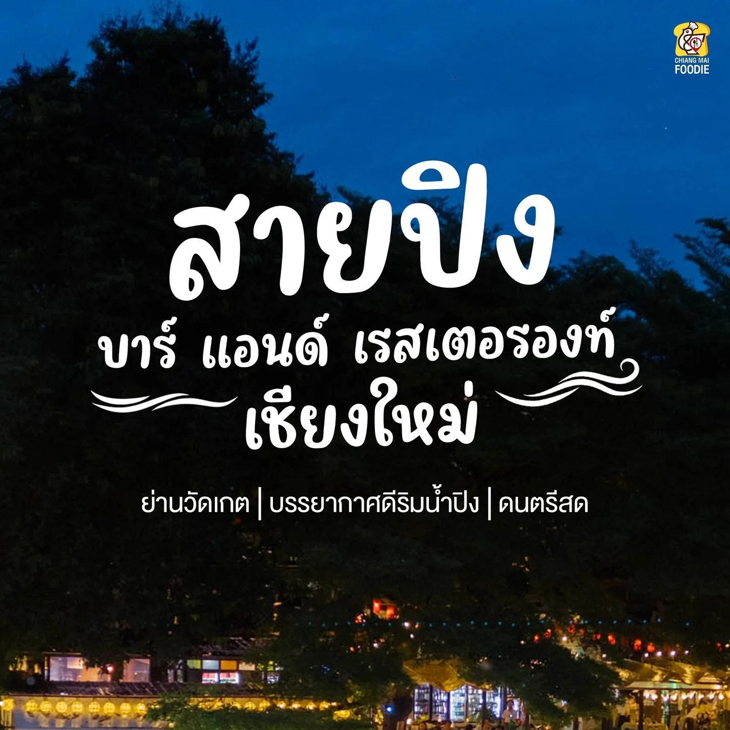ร้านอาหารบรรยากาศดี โรแมนติกมีกลิ่นอายความเป็นไทยล้านนา ริมน้ำปิง พิกัดหาไม่ยาก อยู่ตรงข้ามวัดเกตการาม ติดกับสะพานจันทร์สมหรือที่เรียกกันติดปากแบบชาวเชียงใหม่ว่า ขัวแขก มีที่จอดรถหน้าร้านเลย