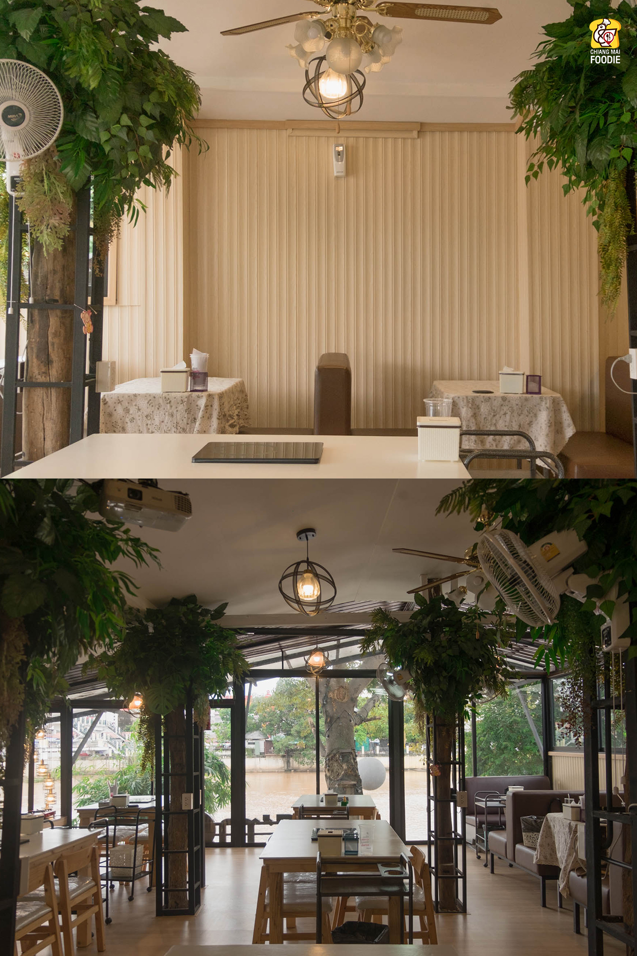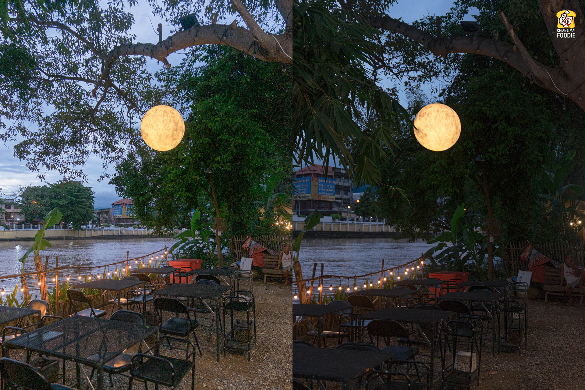 บรรยากาศก็ดีงาม ยามเย็นนั่งดูพระอาทิตย์ลับขอบฟ้าพร้อมกับสายน้ำแม่ปิง รับลมเย็นๆ ริมน้ำไปเล้ยย หรืออยากจะเลือกนั่งในห้องแอร์ก็ฟิลดีไม่แพ้กัน