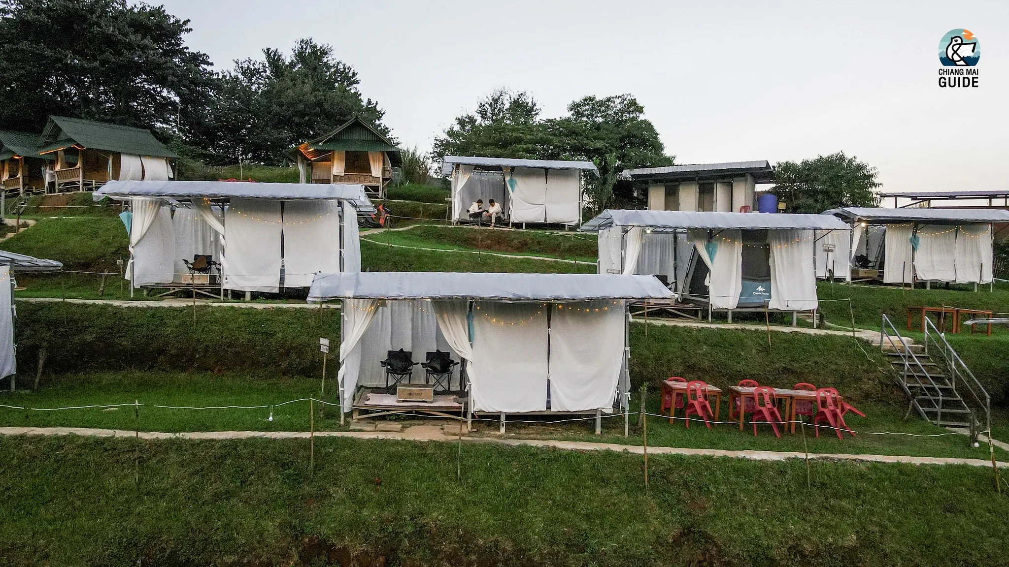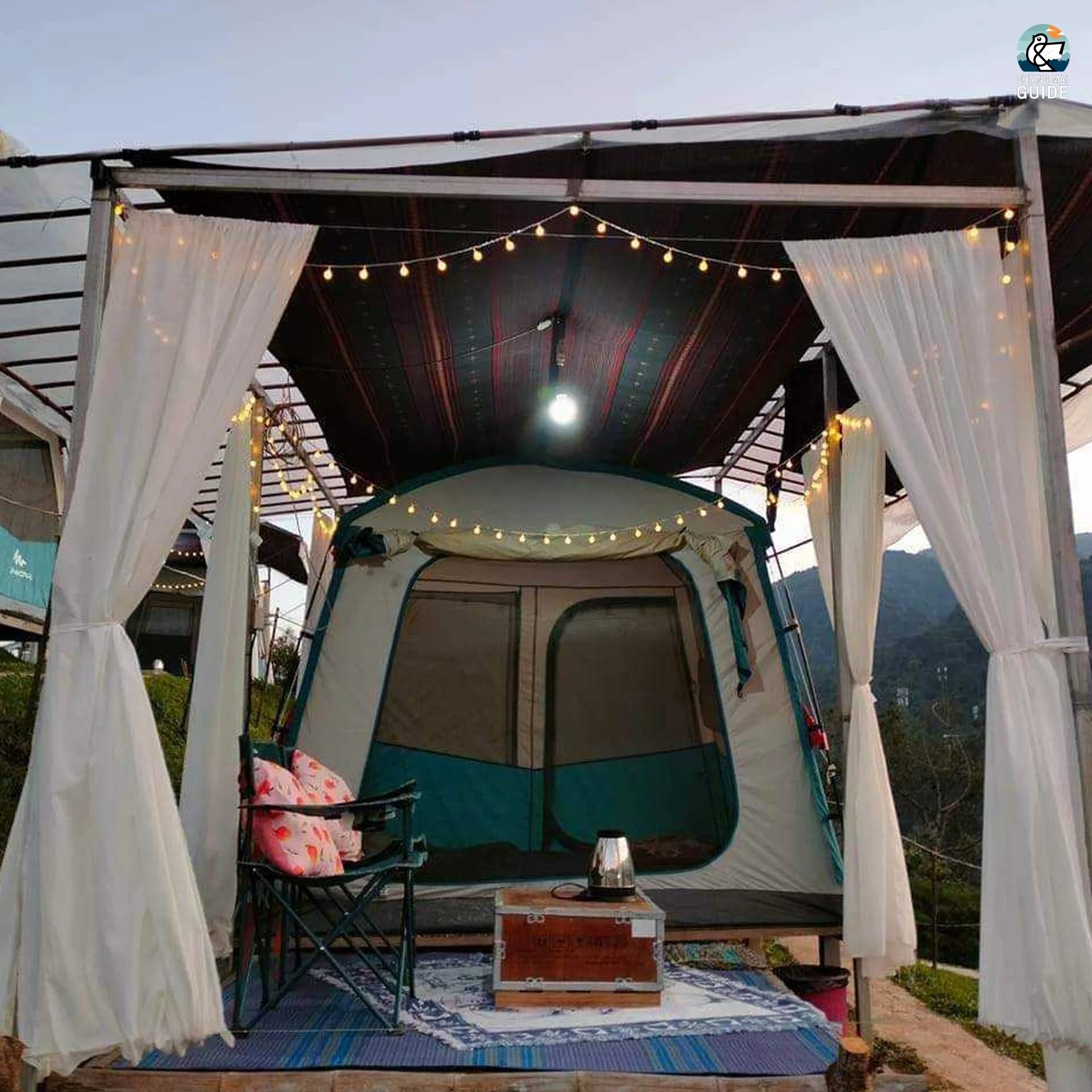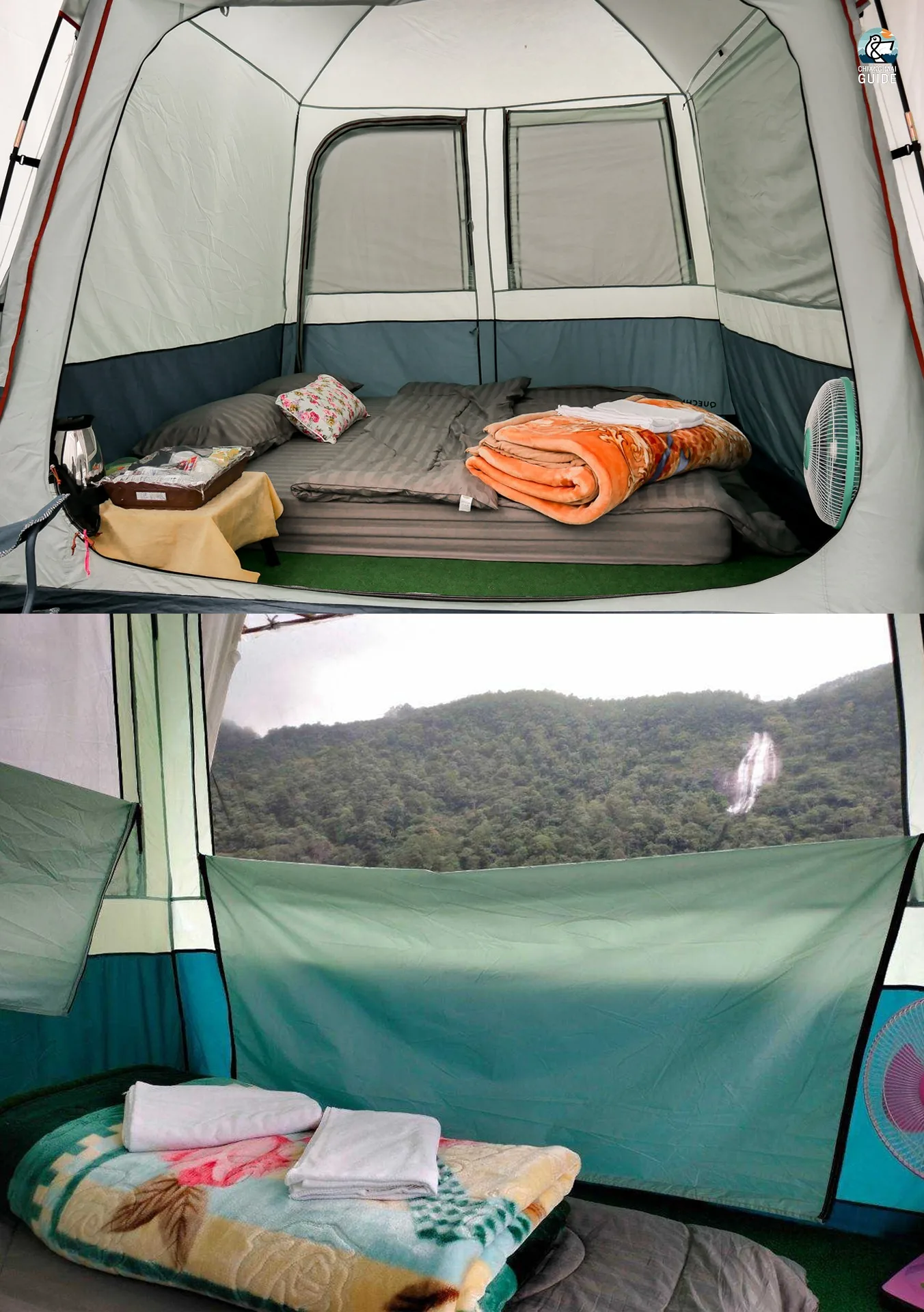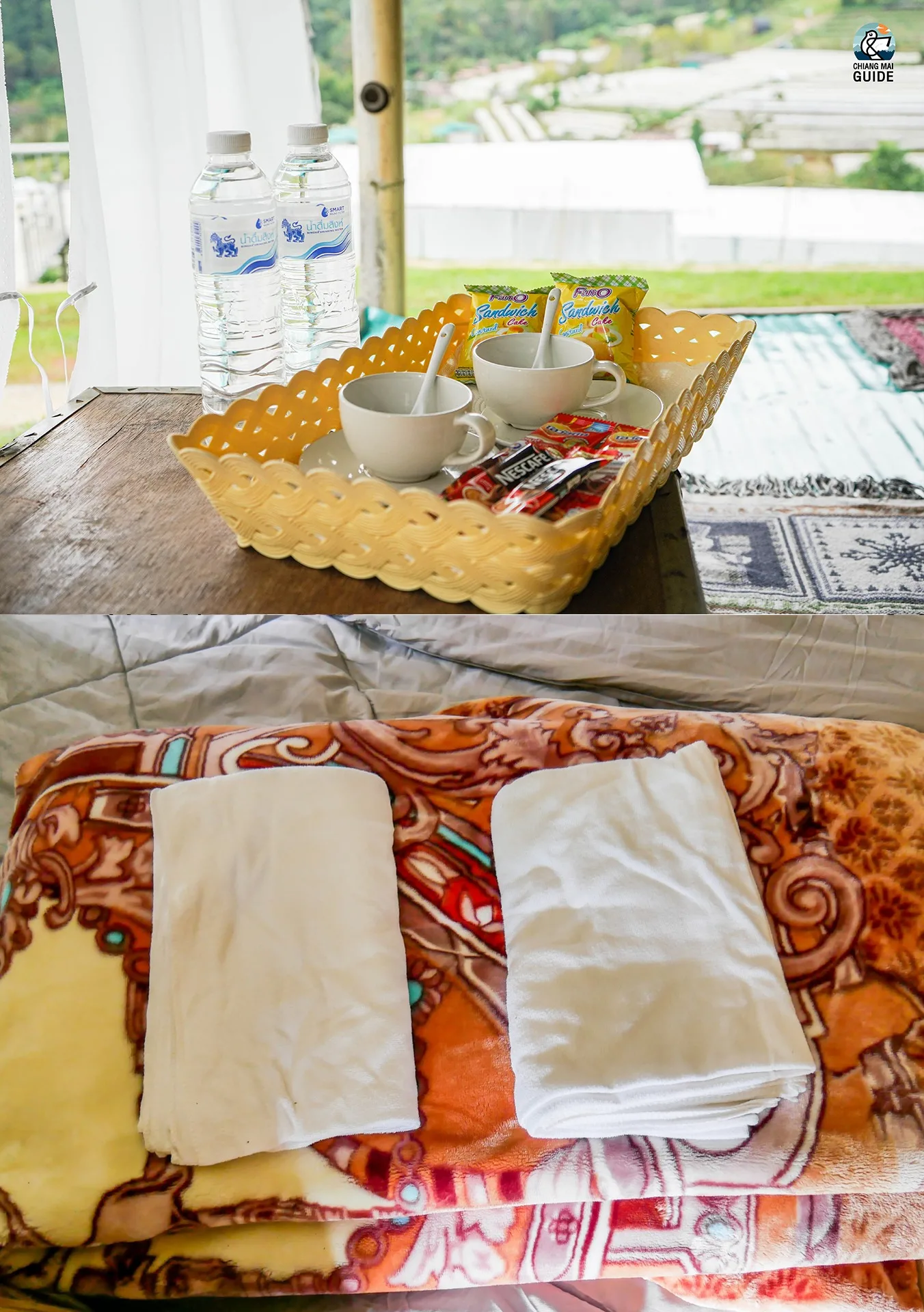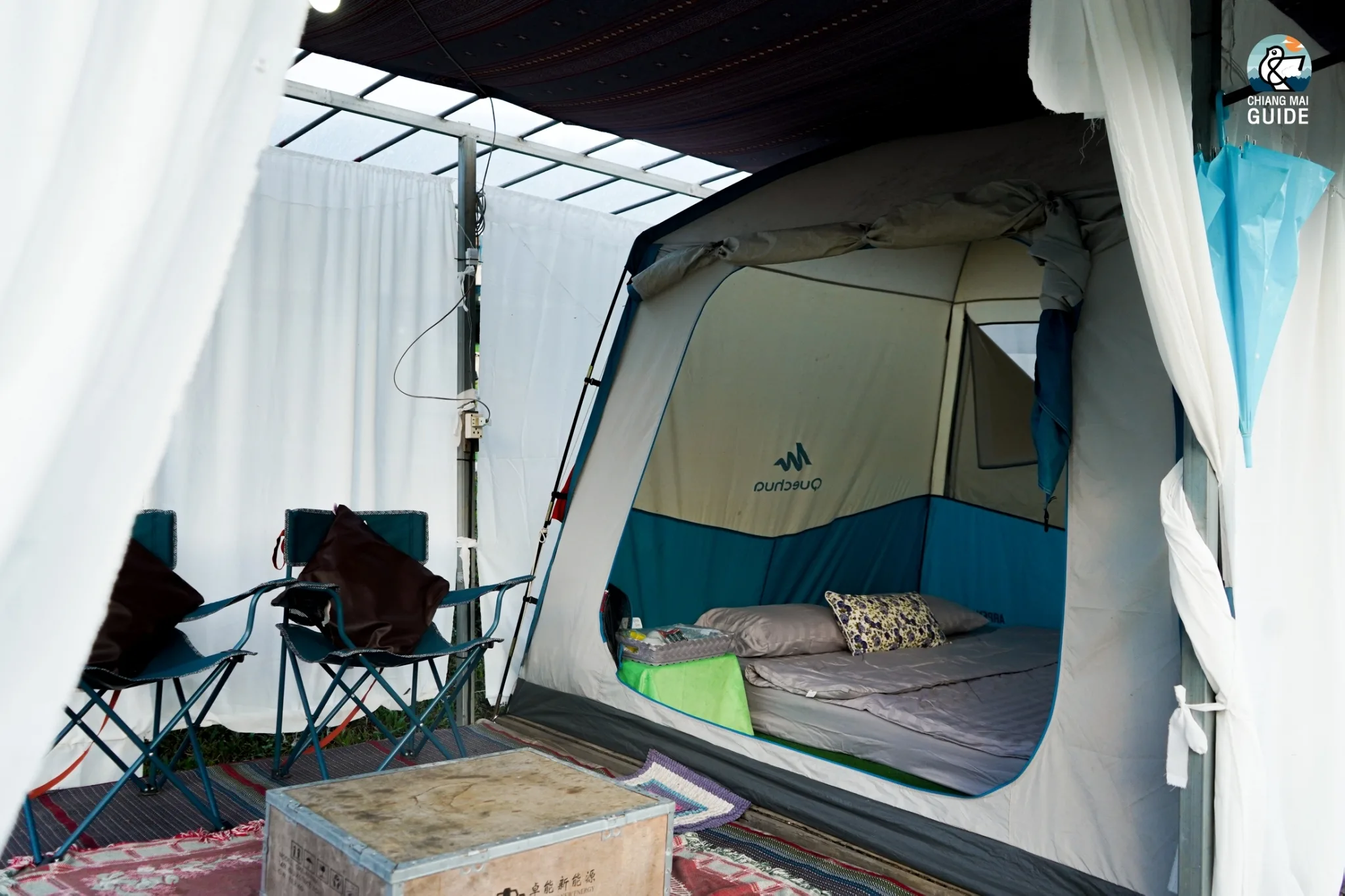 ห้องพักจะมี 2 แบบ คือ แบบกระท่อมไม้ไผ่และแบบเต็นท์แคมป์ปิ้ง ซึ่งทั้ง 2 แบบ มีสิ่งอำนวยความสะดวกครบเลย ใครกลัวหนาวทางนี้เขาก็มีผ้าห่มนุ่มๆ อุ่นๆ แยกให้อีก 1 ผืน เรียกได้ว่าสบายหายห่วง หน้าที่พักก็มีพื้นที่ไว้ให้ได้นั่งชิลทานปิ้งย่างด้วย แถมภายในเต้นท์ก็จะมีขนมขบเคี้ยวแก้หิวให้เราได้หยิบมาทานเล่นๆด้วยนะ