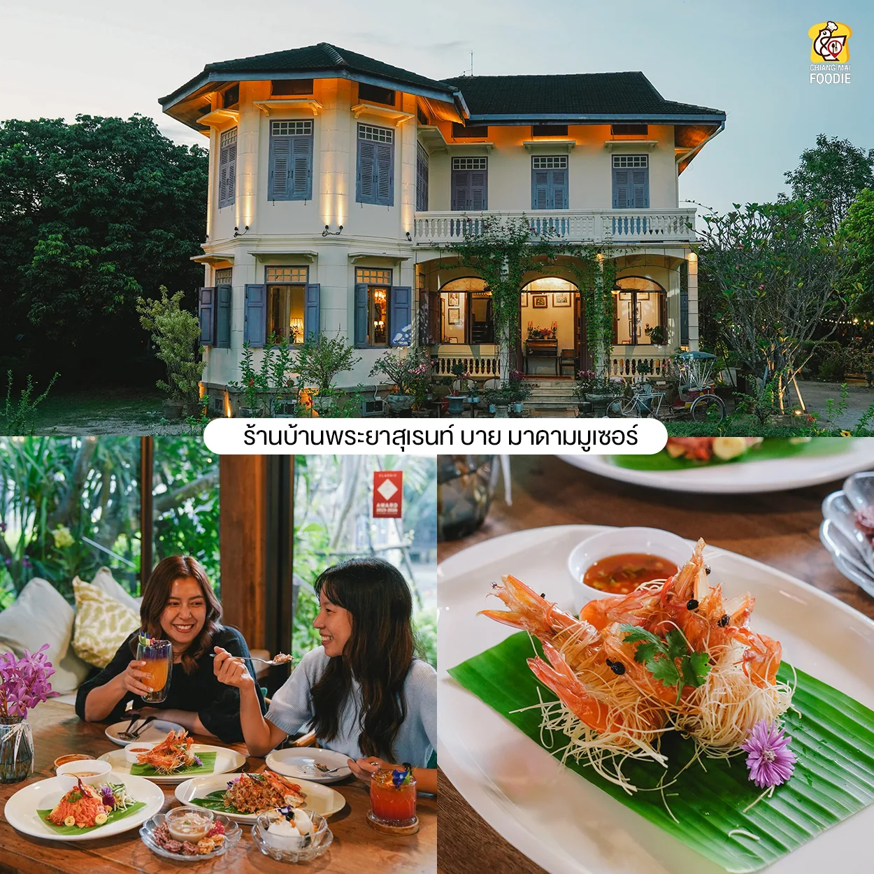 อันโดดเด่น ที่มีอายุเก่าแก่กว่า 133 ปี แถมในอดีตยังเคยเป็นจวนผู้ว่าฯ คนแรกของลำปาง บรรยากาศที่ร้านเหมาะมานั่งชิลสบายๆ มาพักผ่อนอาหารอร่อยมากๆ ได้รับรางวัล Thai SELECT Classic