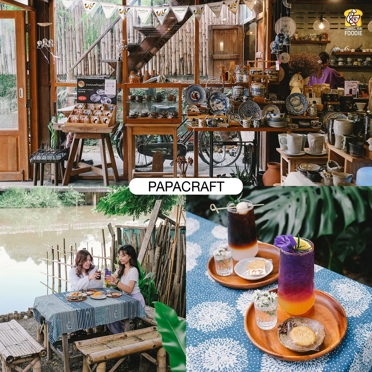 Papacraft (จังหวัดลำปาง) แกลเลอรี่กึ่งคาเฟ่ รวบรวมงานคราฟต์ มีที่จอดรถกว้างขวาง ใครอยากหาที่สงบๆ บรรยากาศเย็นๆ ด้านหลังมีที่นั่งข้างริมน้ำแม่วัง ต้องที่นี่เลยค่าา