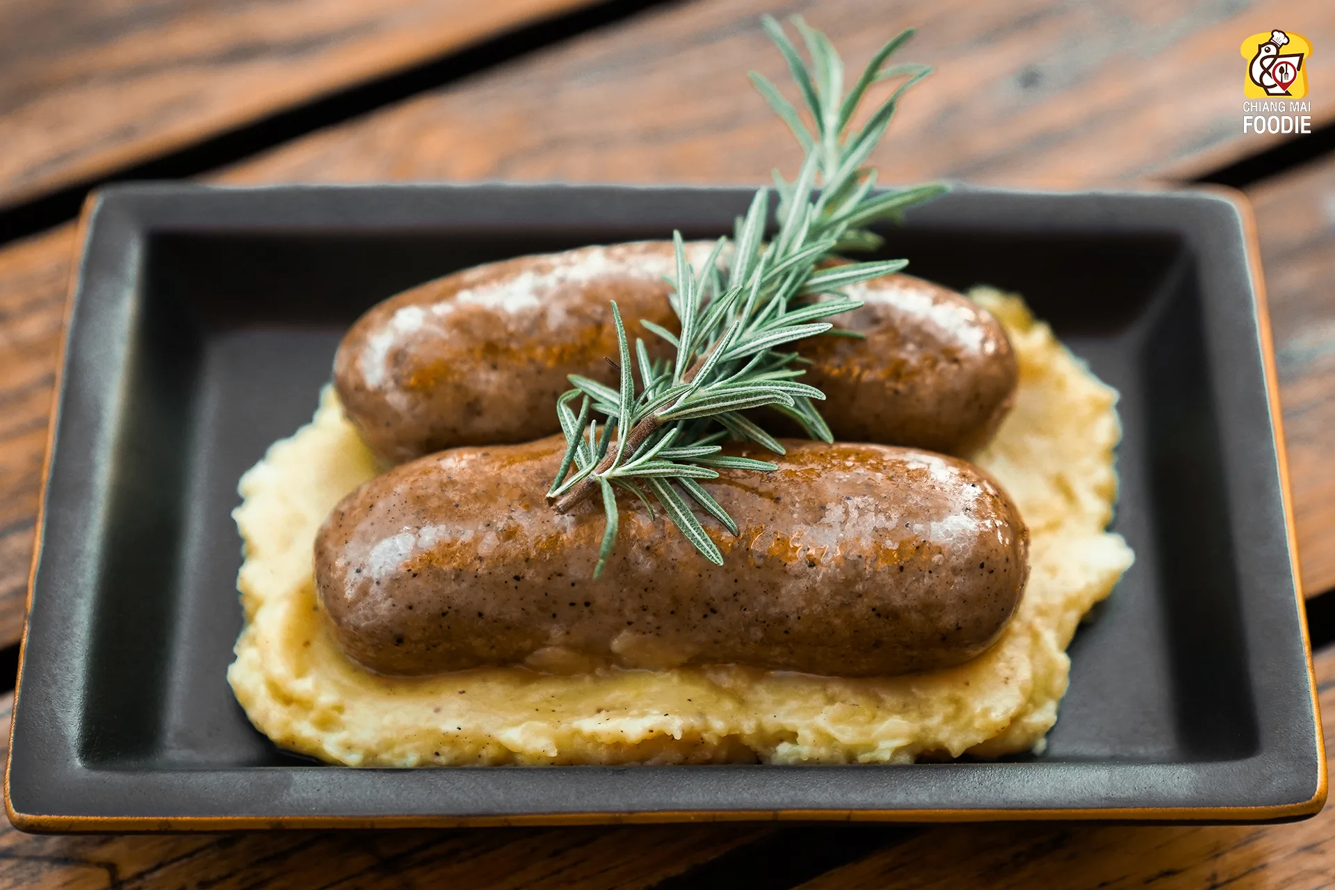 – ไส้กรอกอิตาเลี่ยนเสิร์ฟพร้อมมันบดโฮมเมด