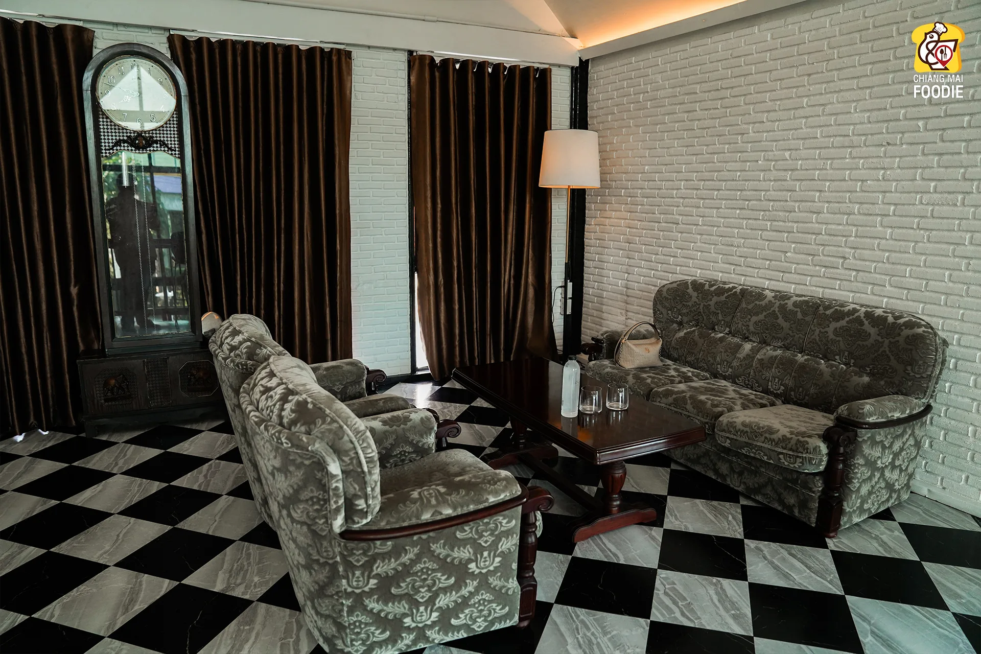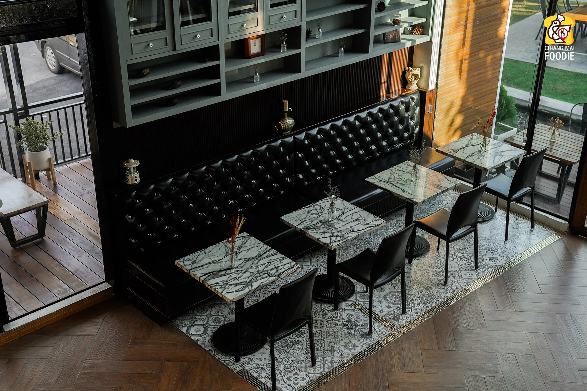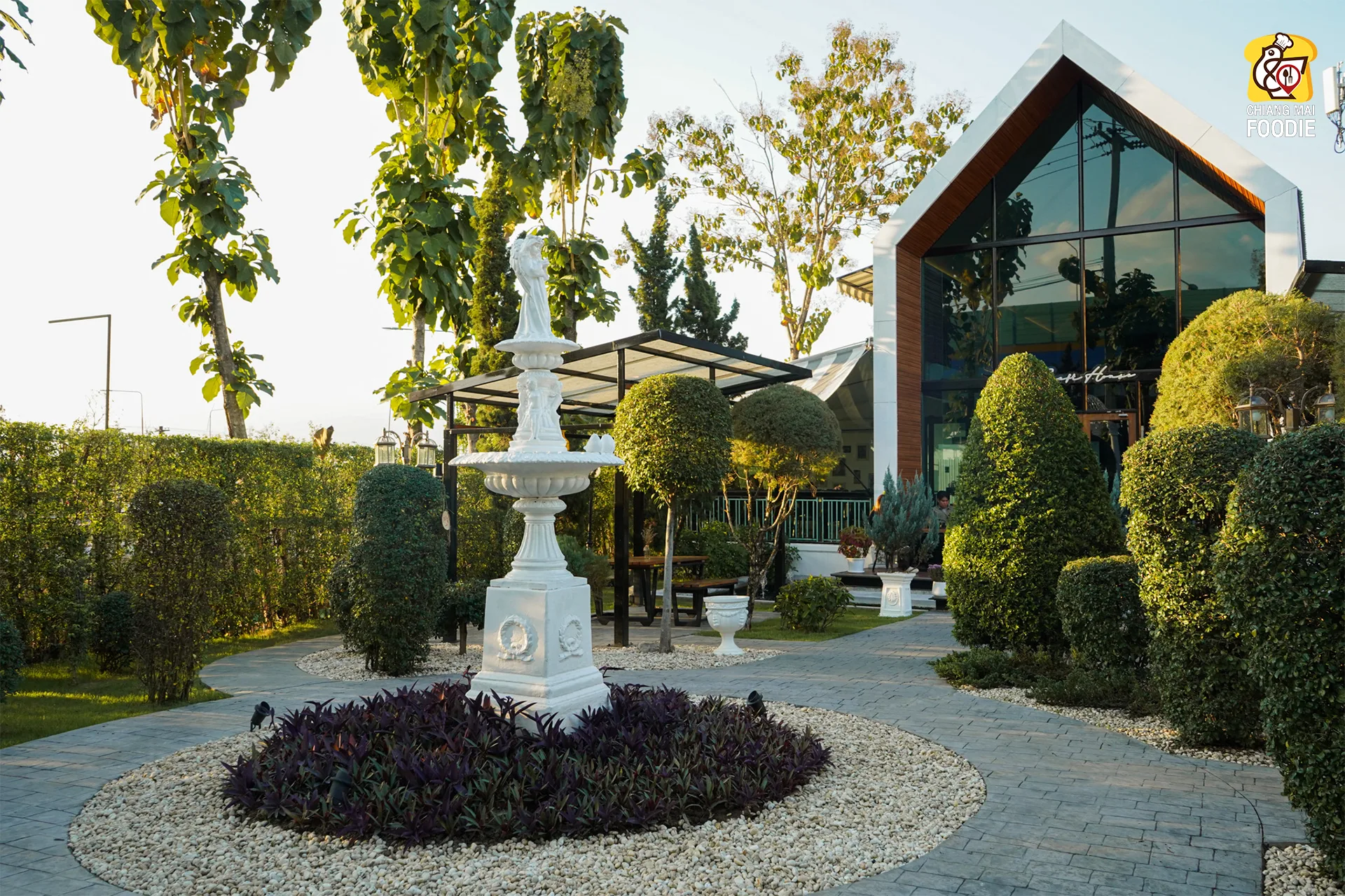 ตัวร้านก็มีทั้งโซนห้องแอร์ภายในร้านตกแต่งแบบเรียบหรู มีกลิ่นอายแบบอังกฤษ รวมไปถึงบรรยากาศชิลๆ ด้านนอกร้านที่ตกแต่งสไตล์สวนต่างประเทศ สายถ่ายรูปต้องชอบ มุมถ่ายรูปเริ่สๆ เยอะ