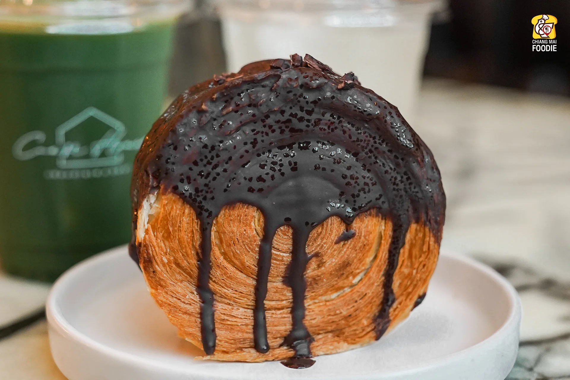 สำหรับขนมอบที่เจ่เจ้ขอลองเป็น ครัวซองต์ช็อคโกแลตซูพรีม น้องมาในลุคน่ารักราดซอสช็อคโกแลตมาแบบฉ่ำมาก ใครคิดว่าฉ่ำไม่พอ แนะนำให้สั่ง Craft chocolate Toast หรือจะอยากชิมกรุบกริบพอดีคำ มีทาร์ตช็อค ชิ้นนุ้บนิ้บให้เลือกด้วยนะ ที่เล่ามาทั้งหมดนี้ แอดมินจัดทุกอัน เพราะเลิฟมากกกก