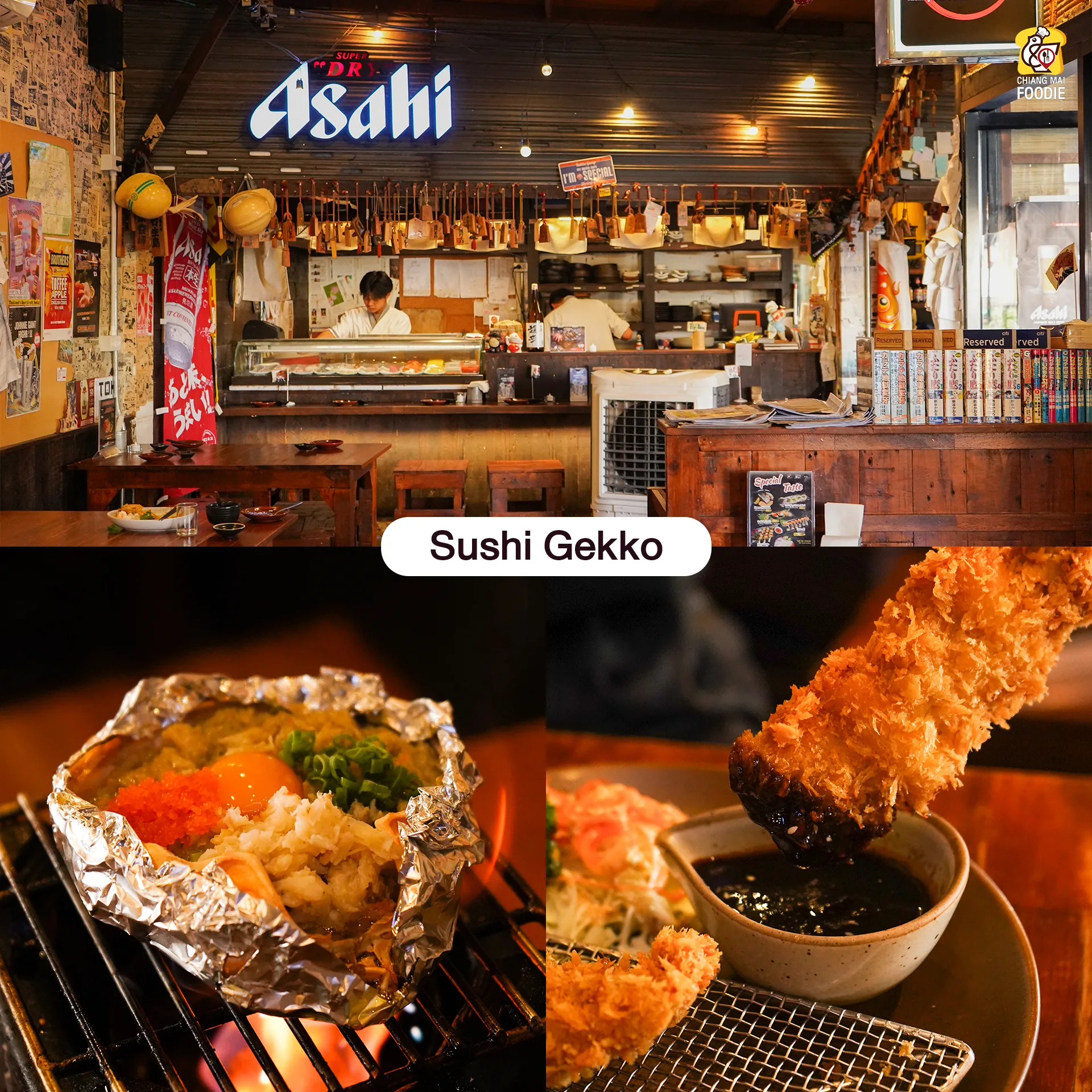 ร้าน Izakaya & Sushi Bar ร้านนั่งดื่มแบบญี่ปุ่นดั้งเดิมตั้งแต่ยุค 70 ได้กลิ่นอายความคลาสิค ผนังร้านเป็นวอลเปเปอร์มังงะ แถมยังเปิดรายการทีวีญี่ปุ่นดั้งเดิมไปอีก แถมโดดเด่นด้วยวัตถุดิบ ที่เลือกคัดสรรพิเศษ เน้นความสด และนำเข้ามาแบบ Special เช่น Shima Aji-Sakura Dai-Tai-Sayori-Katsuo