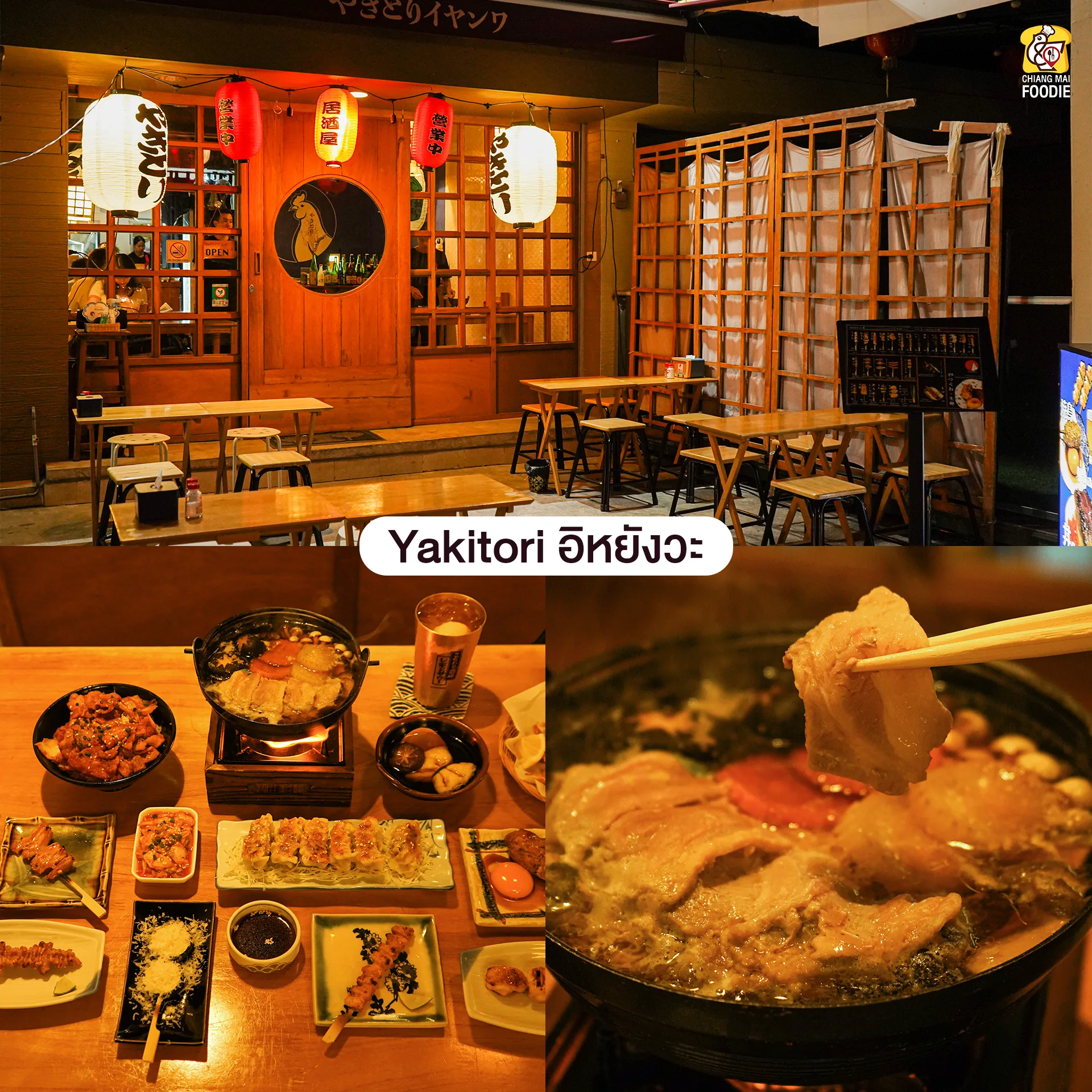 ร้านสไตล์ญี่ปุ่น โดดเด่นเรื่อง Yakitori โดยเฉพาะเมนู “หนังไก่ทอด” ที่เรียกว่าไปทีคือหยุดสั่งไม่ได้ กรอบอร่อย ทานคู่กับซอสของทางร้านลงตัวสุดๆ ไม่เท่านั้นทางร้านยังมีเมนูอื่นๆ และเครื่องดื่มให้บริการอีกมากมาย