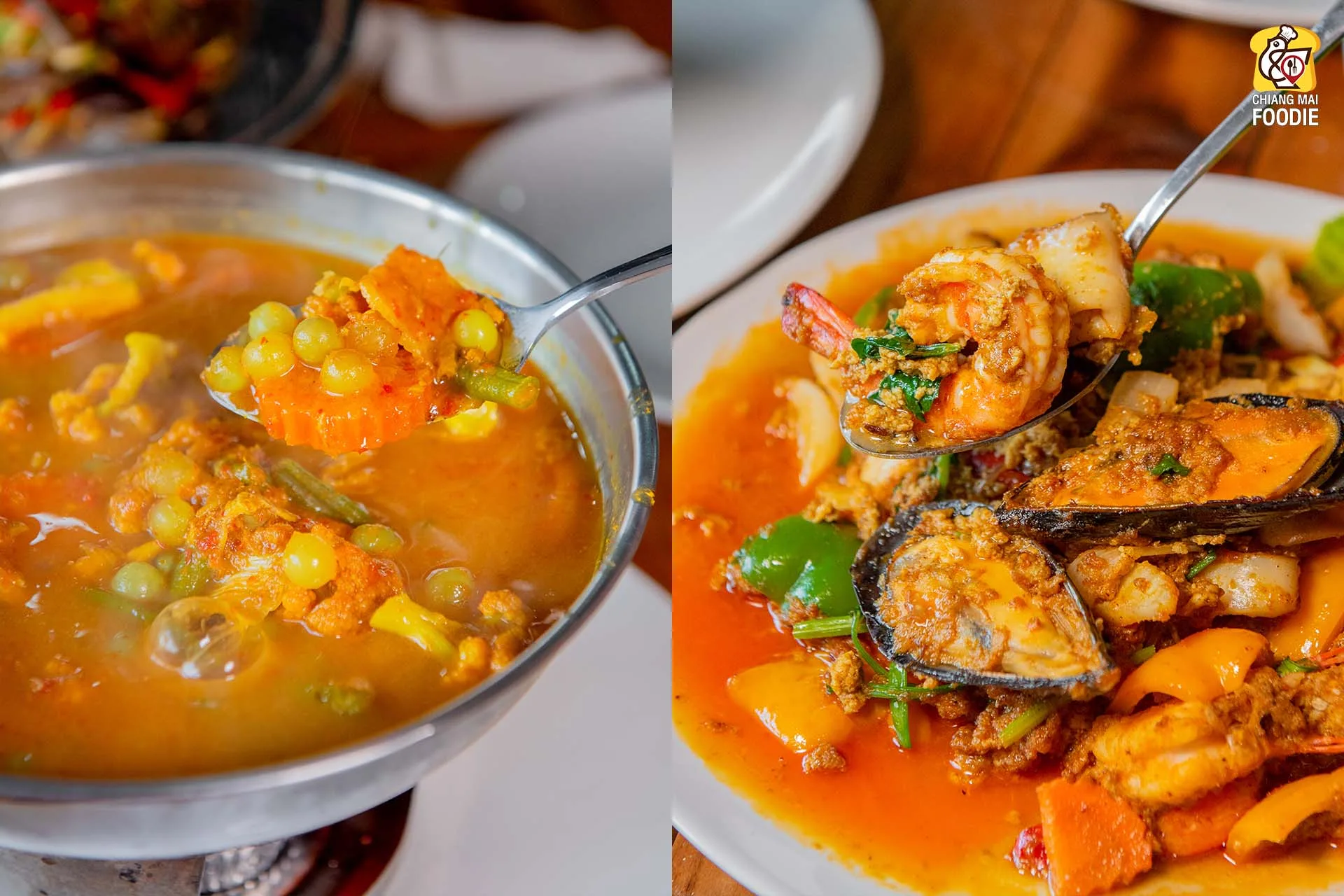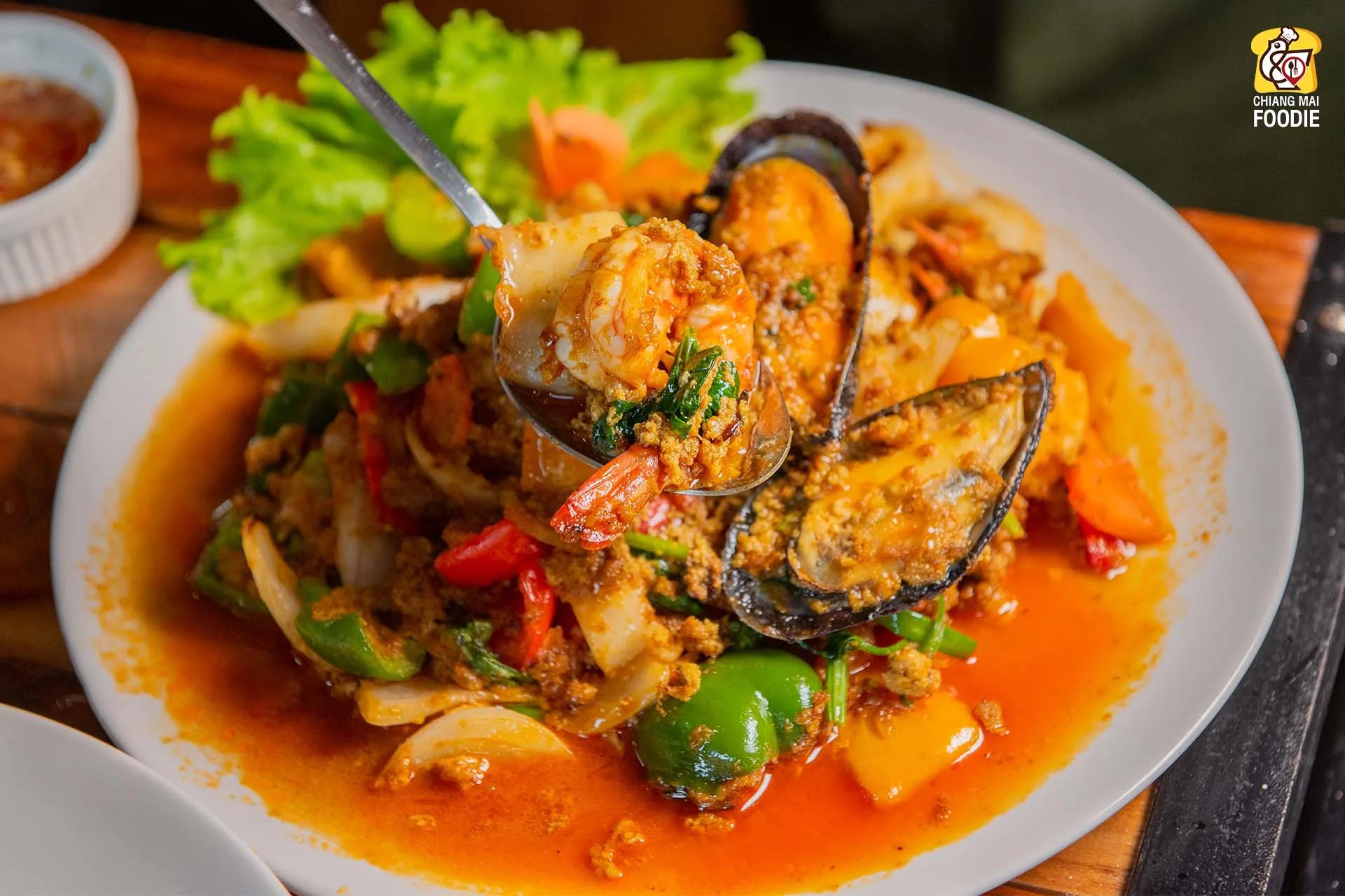 ทะเลผัดผงกะหรี่: รวมมิตรซีฟู้ด กุ้ง หอย หมึก ผัดรวมกับเครื่องแกงผงกะหรี่เข้มข้น หอมเครื่องเทศ เผ็ดร้อน ทานคู่กับข้าวสวยอร่อยลงตัว