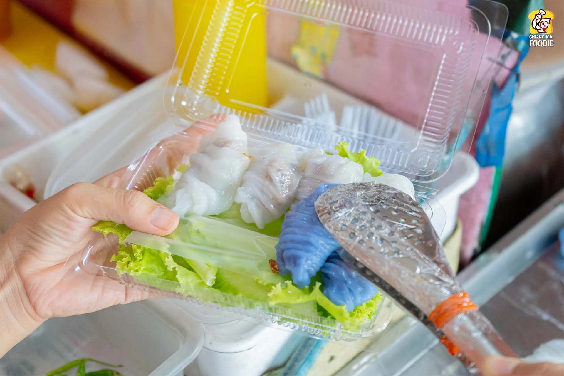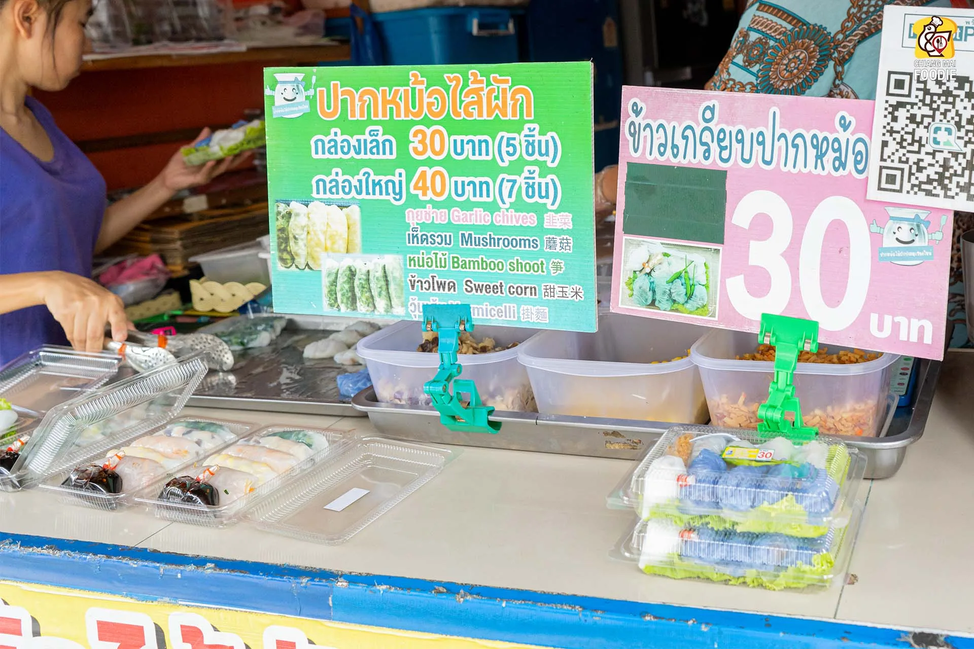 ในราคาเริ่มต้นเพียง 30 บาท (5 ชิ้น) นอกจากนี้ ยังมีปากหม้อไส้ธรรมดา ทานคู่น้ำกะทิคือนัวหอมละมุนสุด ๆ อีกทั้งยังมีเมนูกุ้ยช่ายทอดด้วยน้า แป้งกรอบนอกนุ่มใน จิ้มน้ำจิ้มสูตรทางร้าน ฟินมากกก