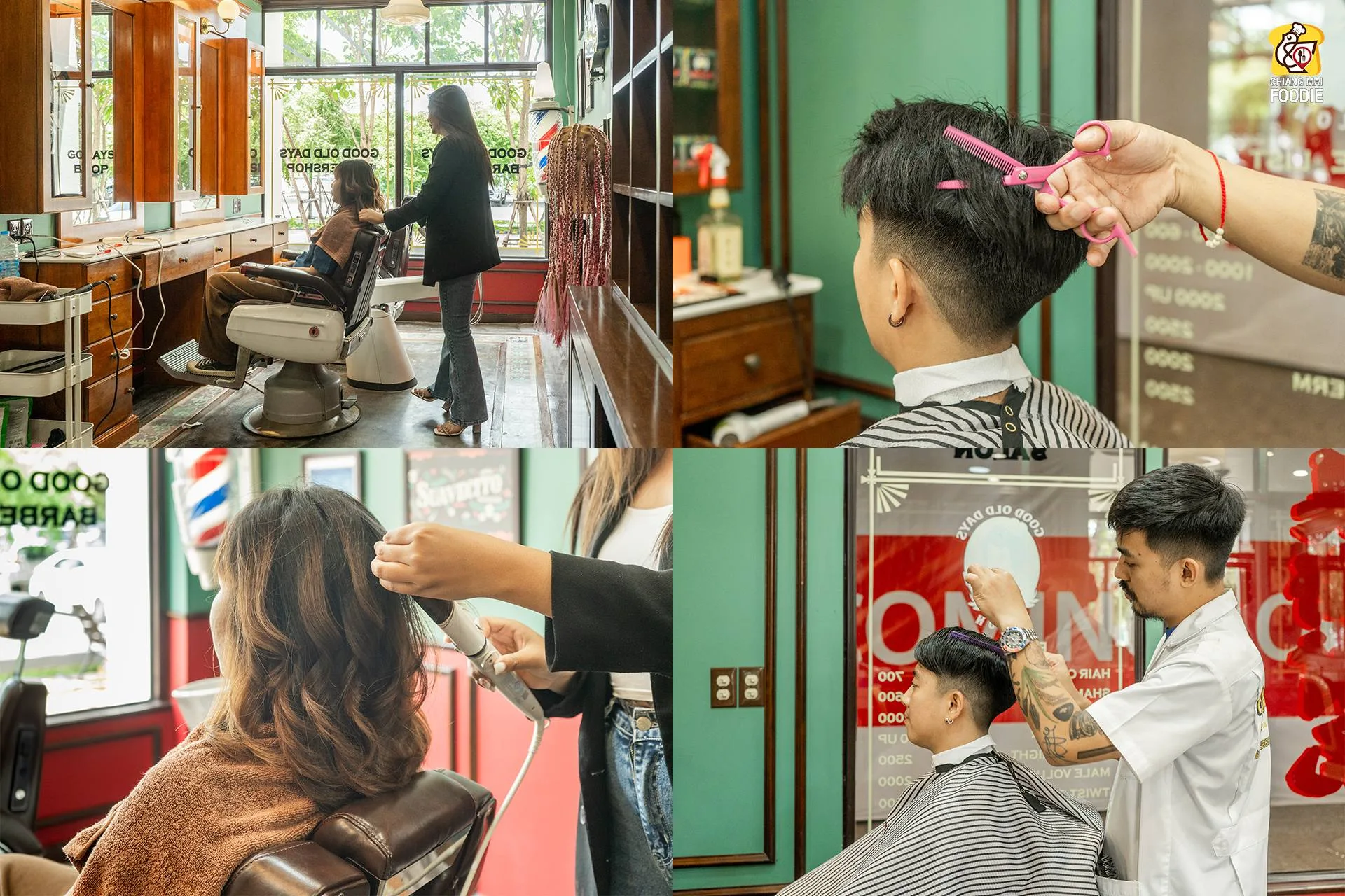 #GoodOldDaysBarberShop ร้านออกแบบทรงผมและดูแลเรื่องสุขภาพผม ทุกเพศทุกวัย ตกแต่งแบบมีสเน่ห์เฉพาะตัวสไตล์เรโทร มาร้านนี้คือเอนจอยสุดๆ พนักงานเป็นกันเองบริการเยี่ยม
