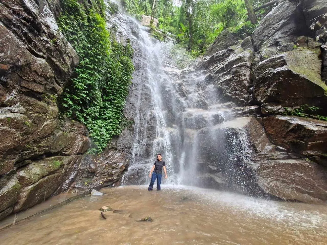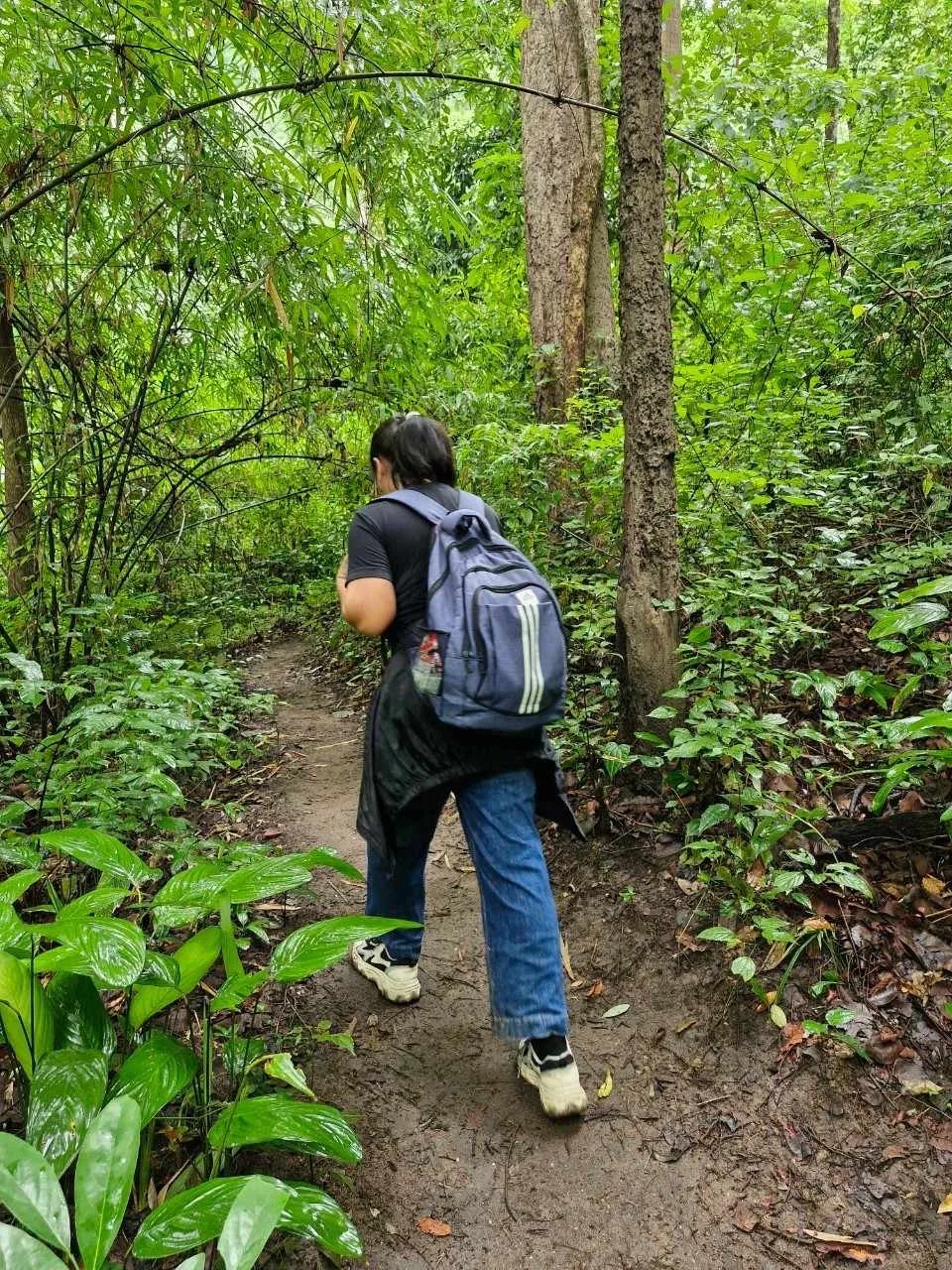 เมื่อขับรถมาถึงจุดจำหน่ายบัตร ค่าเข้าคนละ 20 บาท จากจุดจำหน่ายบัตรด้านหน้าก็ขับรถขึ้นมาเลื่อยๆ ผ่านหุ่นฟางคิงคอง ผ่านฟาร์มแกะ ไปถึงด่านตรวจห้วยตึงเฒ่าข้างบน จากด่านตรวจห้วยตึงเฒ่า นำรถจอดไว้บริเวณด่านตรวจแล้วเริ่มเดินเท้าเข้าไป เดินแบบไม่หยุดพัก ถึงน้ำตก ใช้เวลาเดินเท้าประมาณ 1 ชั่วโมง 20 นาที ตลอดทางเดินมีถนนชัดเจน บรรยากาศร่มรื่น มีเสียงแมลงตลอดทาง เดินตามทางน้ำตกไม่มีหลงทาง สามารถนำอาหารขึ้นไปทานได้ (แต่ต้องเก็บขยะลงมาทิ้งด้านล่าง)