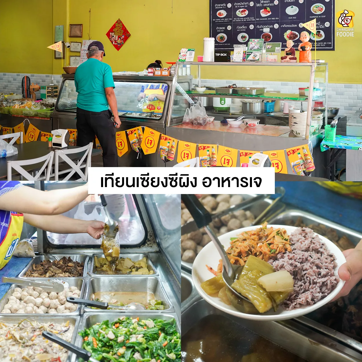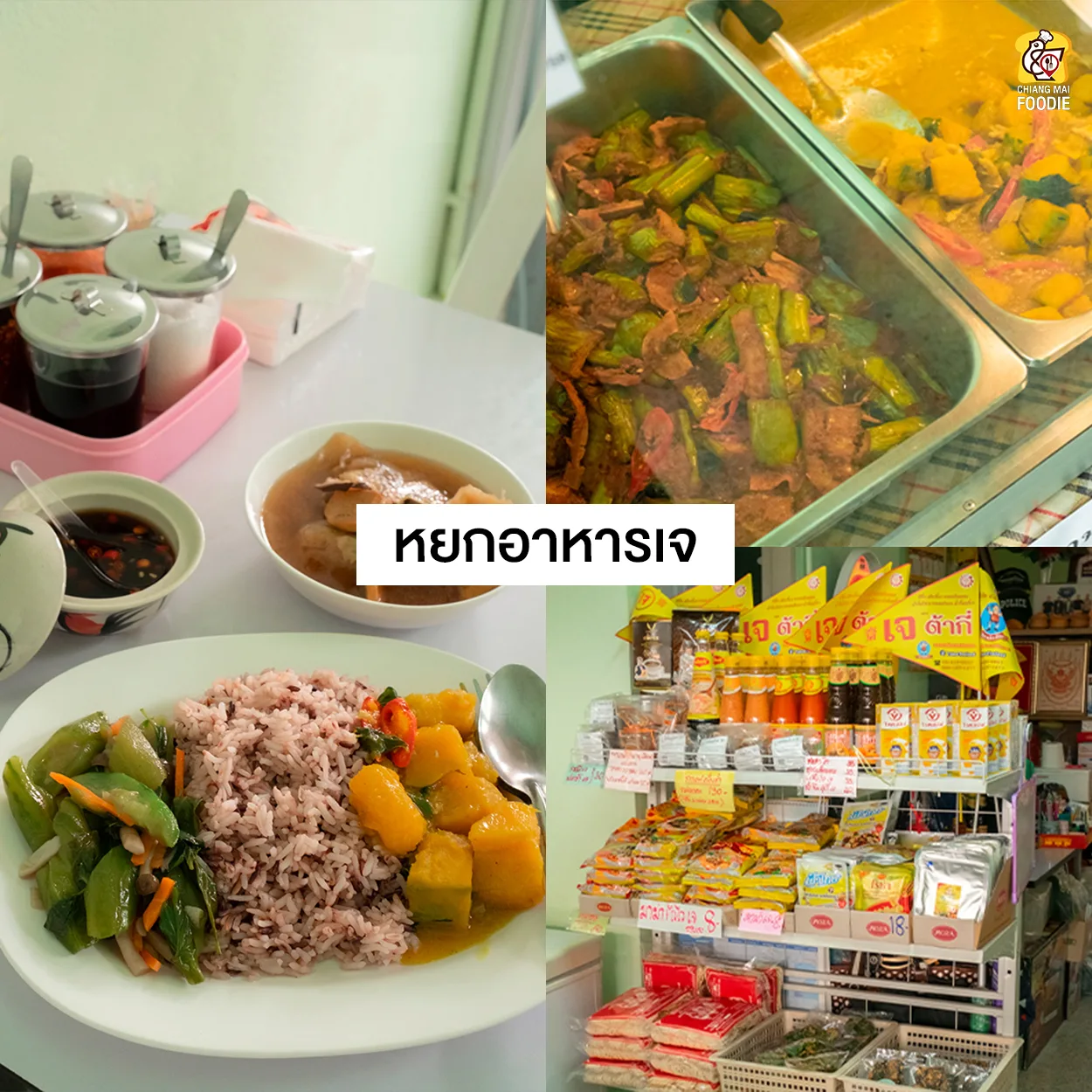 ร้านอาหารเจย่านประตูเชียงใหม่ ที่มีทั้งอาหารและวัตถุดิบเจจำหน่าย ร้านกว้างขวาง เทศกาลกินเจนี้บ้านไหนทำอาหารทานเอง สามารถแวะมาได้