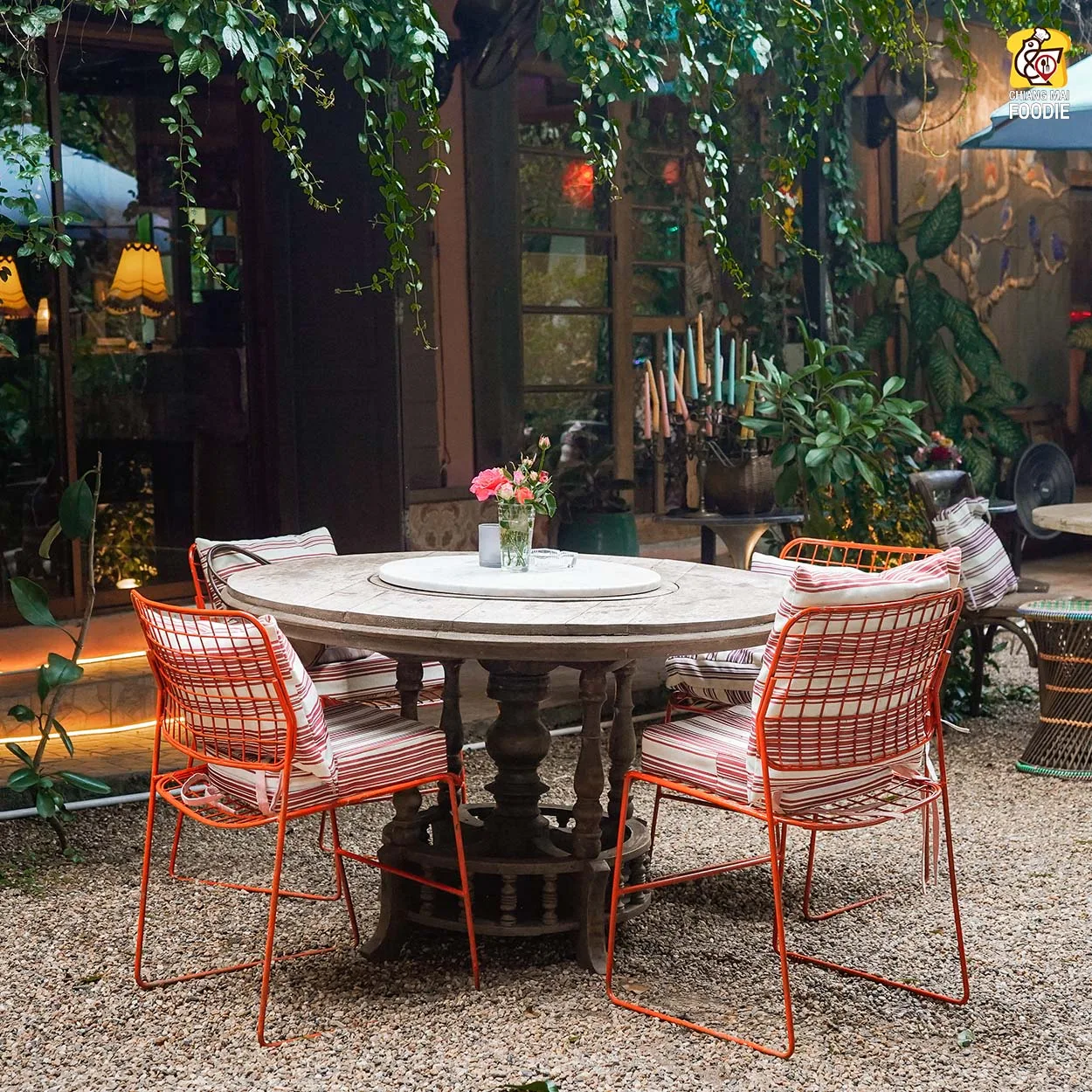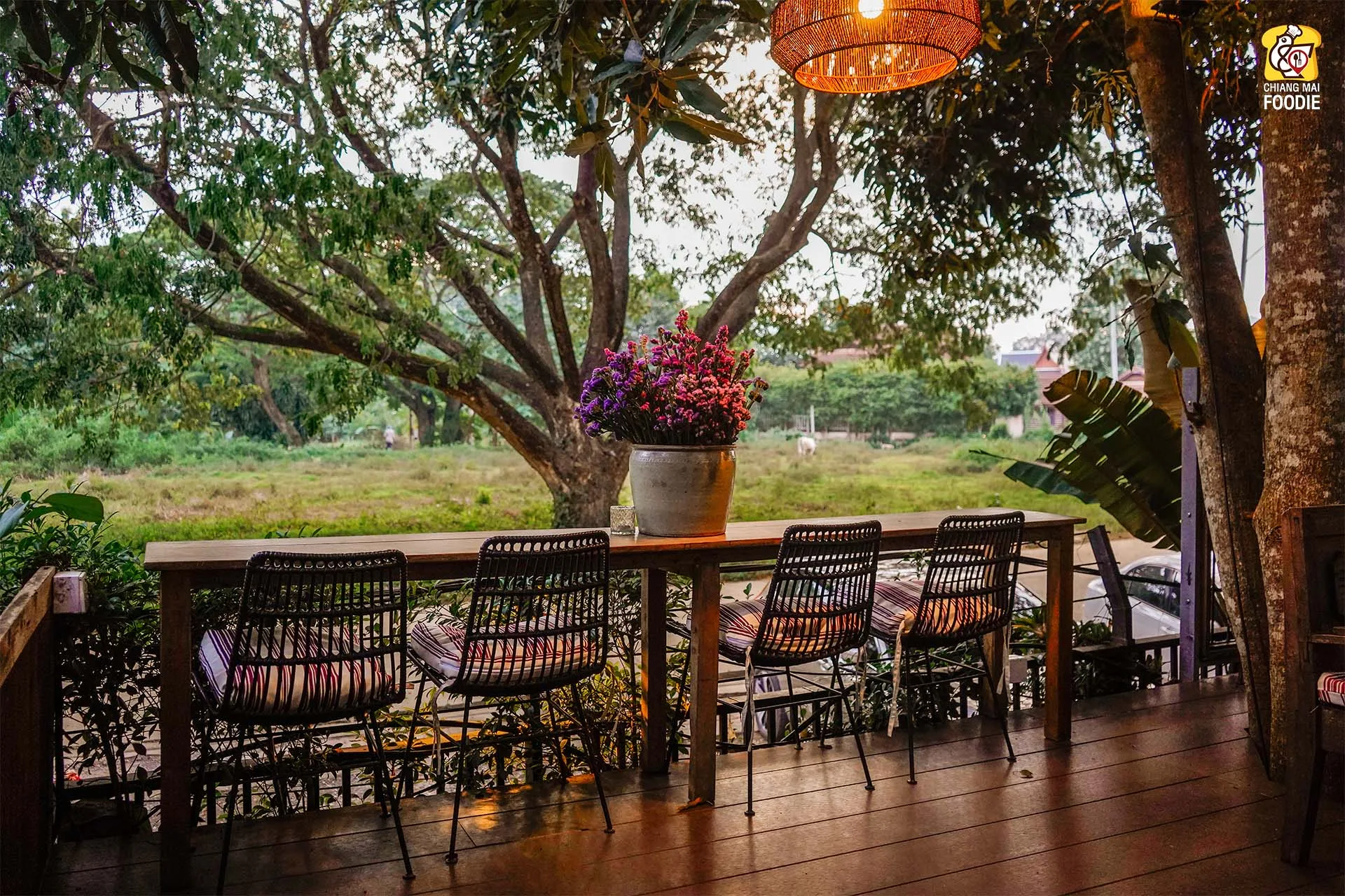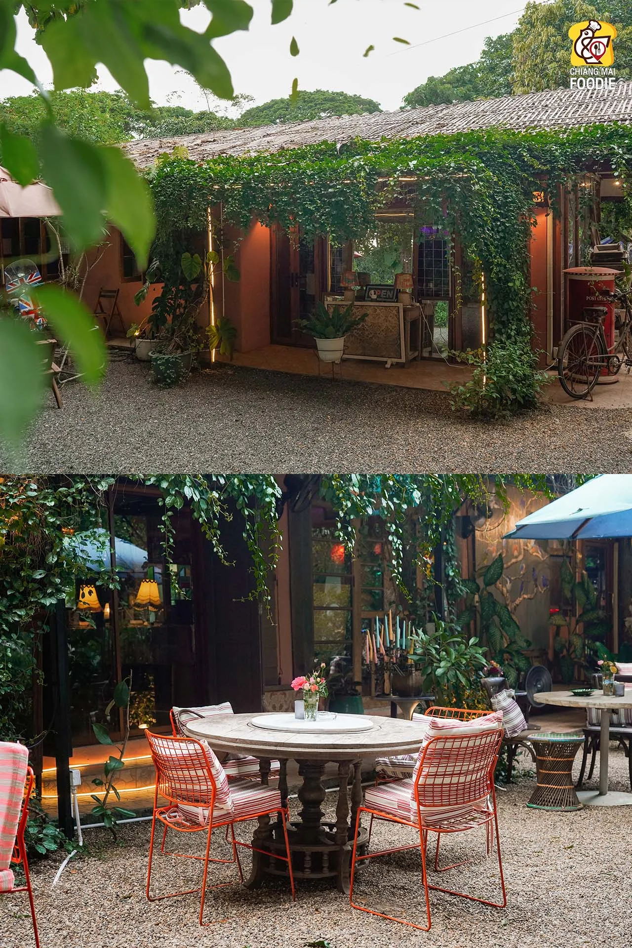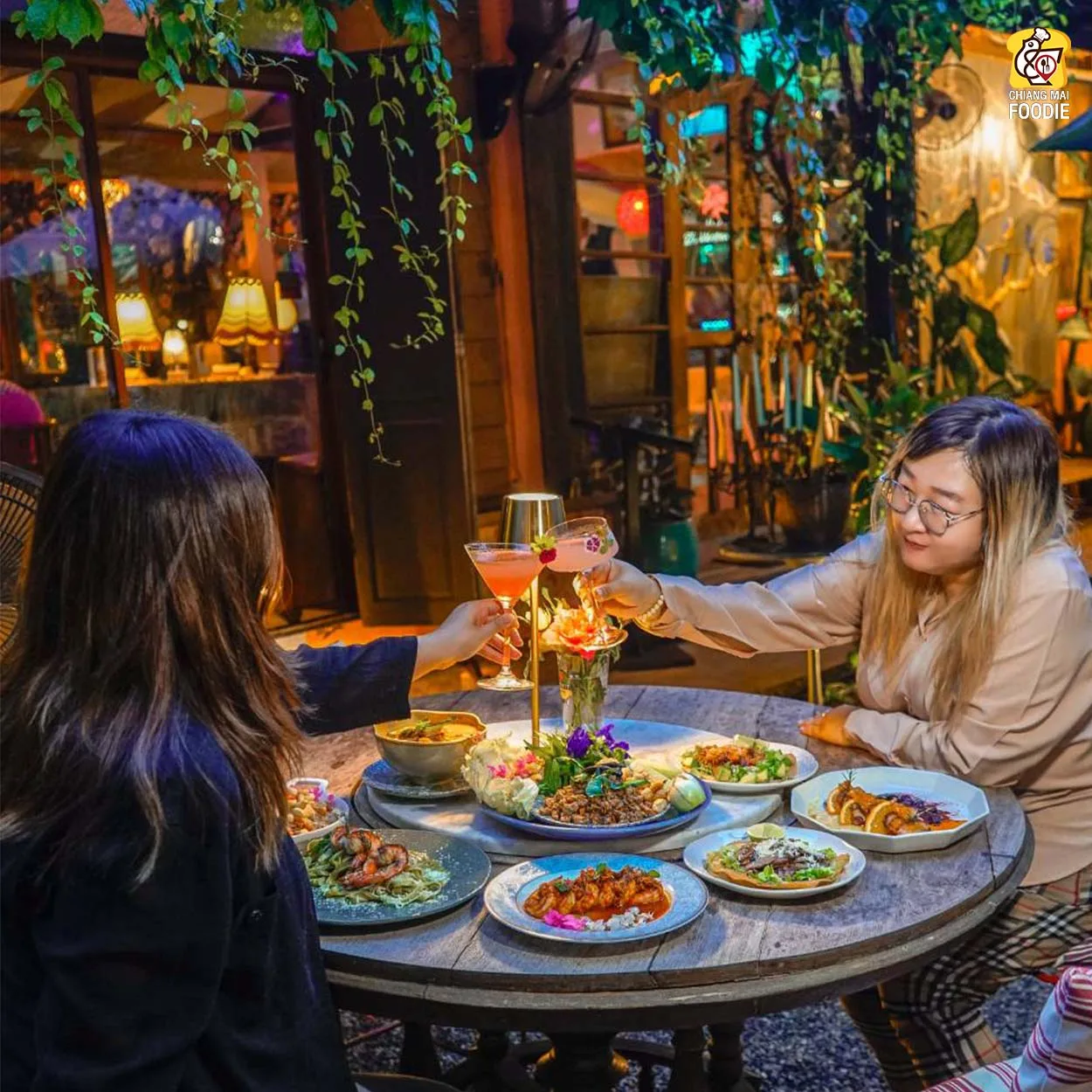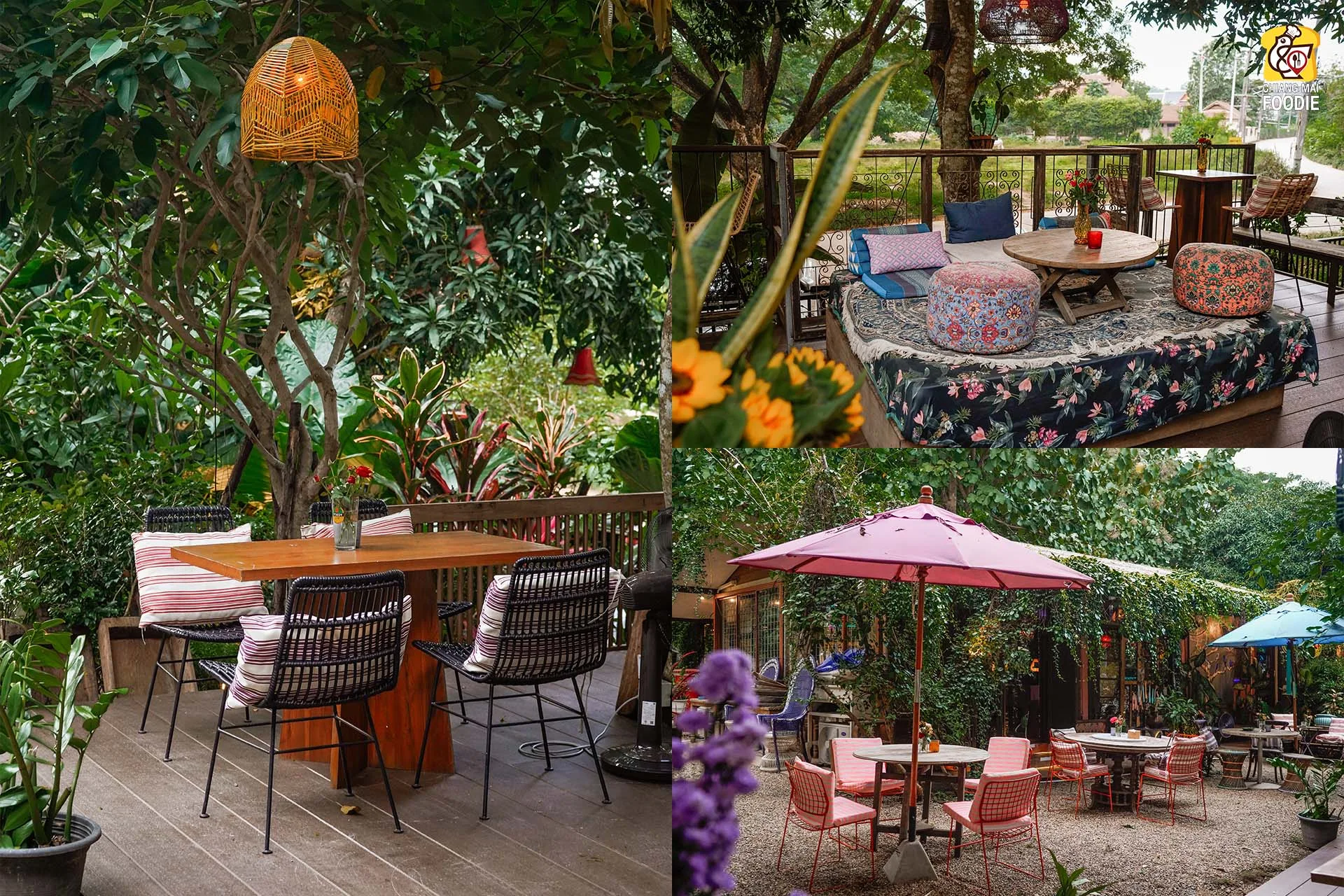 บอกเลยว่านี่คือร้านลับย่านแม่ริม และทำถึง! ทั้งอาหารตำรับไทย เทศ พร้อมกับบรรยากาศการตกแต่งร้านที่มีเสน่ห์เฉพาะตัว ที่นี่รวบเป็นทั้งร้านอาหาร เลาจน์ บาร์ เข้าด้วยกันอย่างลงตัวเลยค่ะ ชอบตรงที่ตกแต่งด้วยงานคราฟท์สีสันสดใสคละกันทั้งของตกแต่งแบบเรโทร และวินเทจ บวกกับความร่มรื่นท่ามกลางแมกไม้ บอกเลยว่าเราได้เสพความเป็นธรรมชาติพร้อมด้วยศิลปะที่น่ารักสุดๆ เหมาะทั้งมาดินเนอร์หวานๆ เปิดตี้กับเพื่อนฝูง หรือว่าจะพาครอบครัวมาทานมื้อค่ำถึงดึก