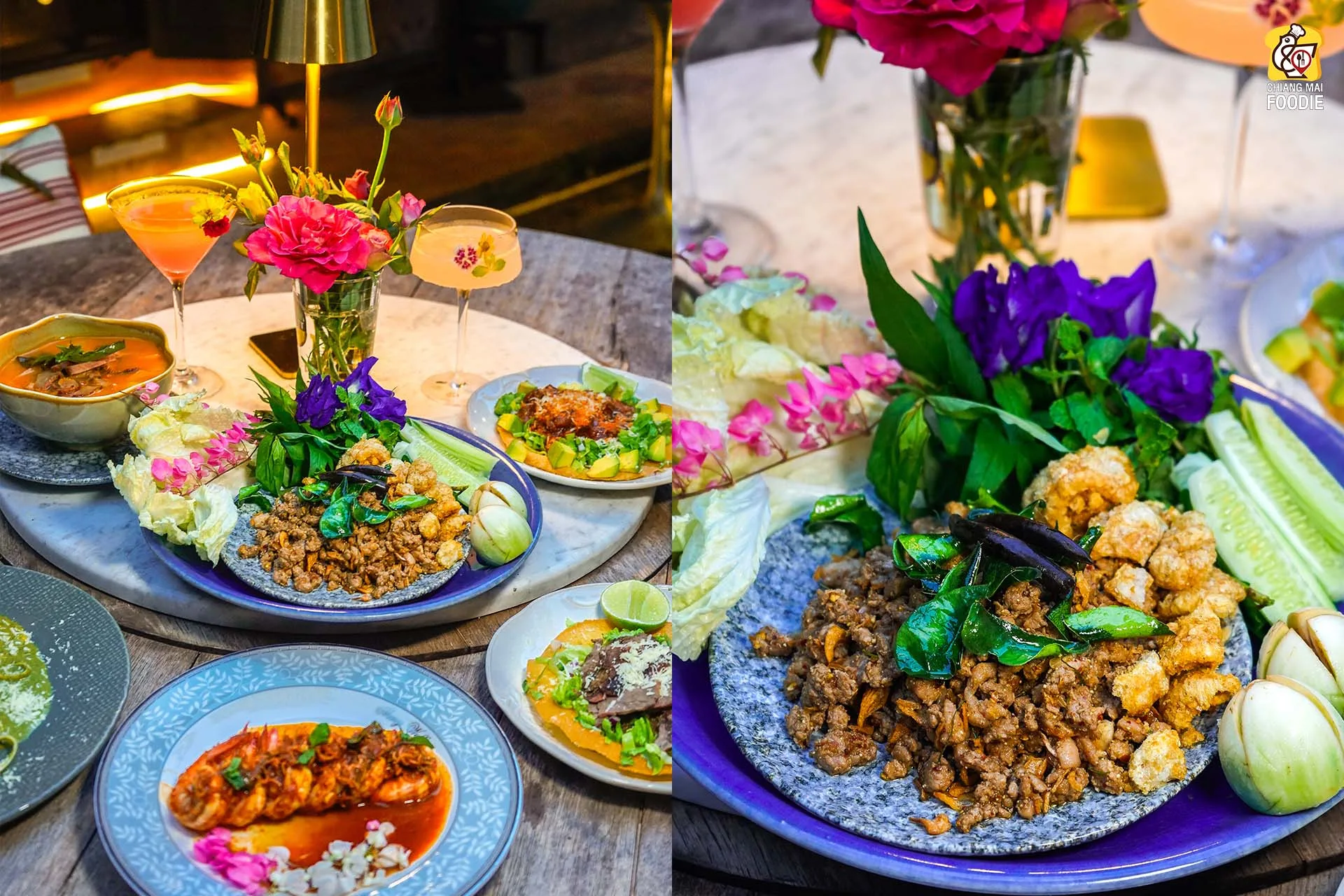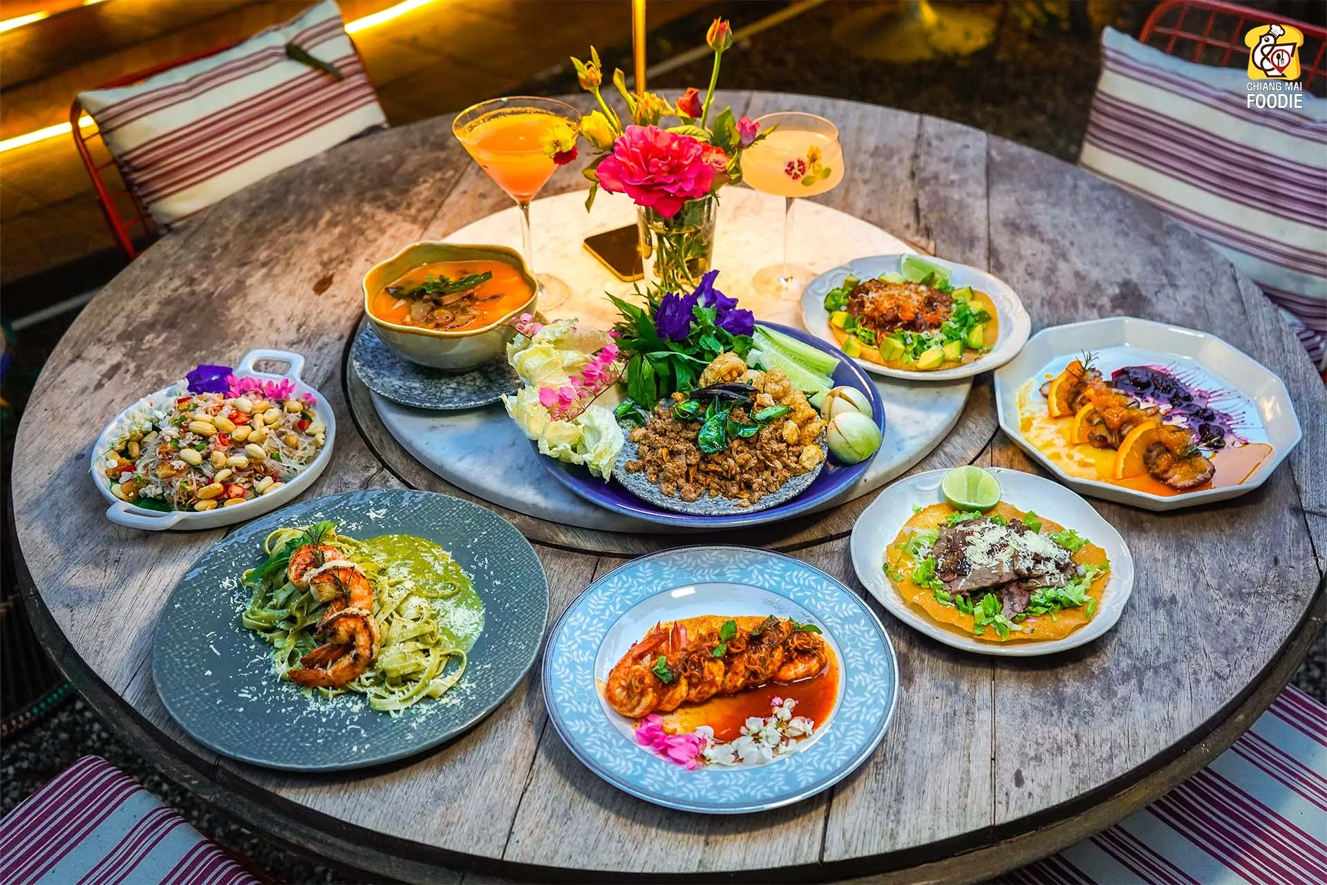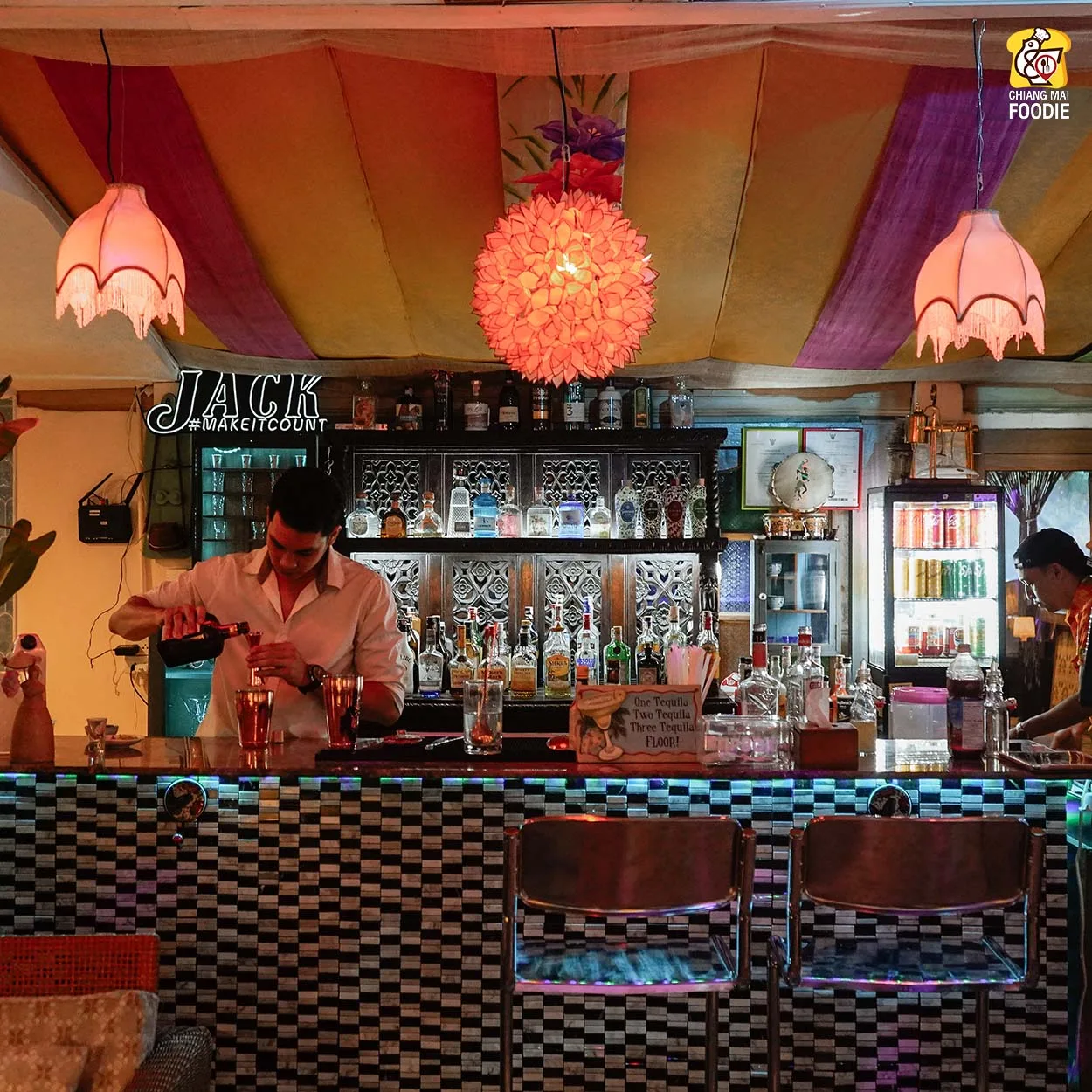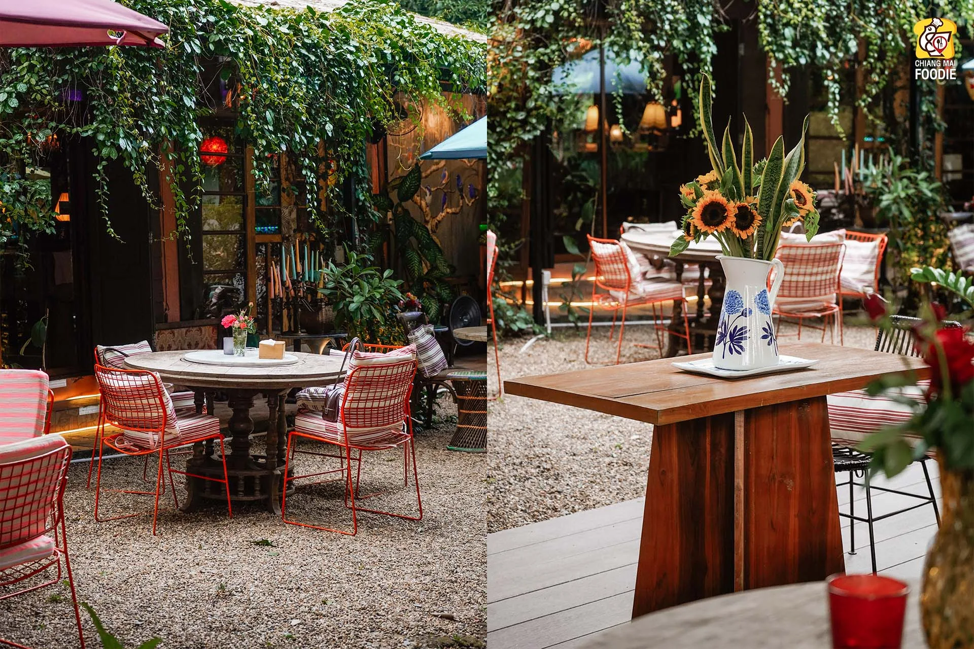 บอกเลยว่านี่คือร้านลับย่านแม่ริม และทำถึง! ทั้งอาหารตำรับไทย เทศ พร้อมกับบรรยากาศการตกแต่งร้านที่มีเสน่ห์เฉพาะตัว ที่นี่รวบเป็นทั้งร้านอาหาร เลาจน์ บาร์ เข้าด้วยกันอย่างลงตัวเลยค่ะ ชอบตรงที่ตกแต่งด้วยงานคราฟท์สีสันสดใสคละกันทั้งของตกแต่งแบบเรโทร และวินเทจ บวกกับความร่มรื่นท่ามกลางแมกไม้ บอกเลยว่าเราได้เสพความเป็นธรรมชาติพร้อมด้วยศิลปะที่น่ารักสุดๆ เหมาะทั้งมาดินเนอร์หวานๆ เปิดตี้กับเพื่อนฝูง หรือว่าจะพาครอบครัวมาทานมื้อค่ำถึงดึก