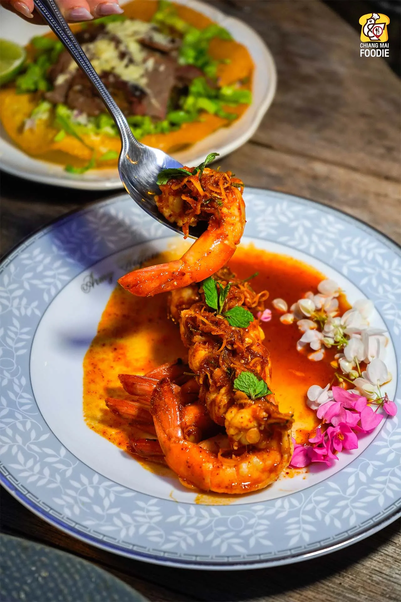 #พล่ากุ้ง รสนัวๆ เข้มข้นกุ้งสดตัวใหญ่เด้งสู้ฟัน และ #ลาบเป็ด ที่เสิร์ฟมาอย่างจัดหนัก จัดเต็ม พร้อมด้วยเครื่องผักสด สาแก่ใจคนเลิฟผักอย่างแอดมินมากกก