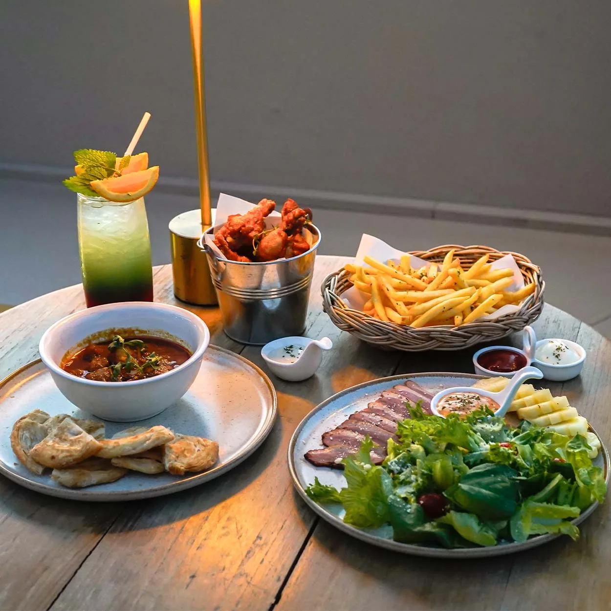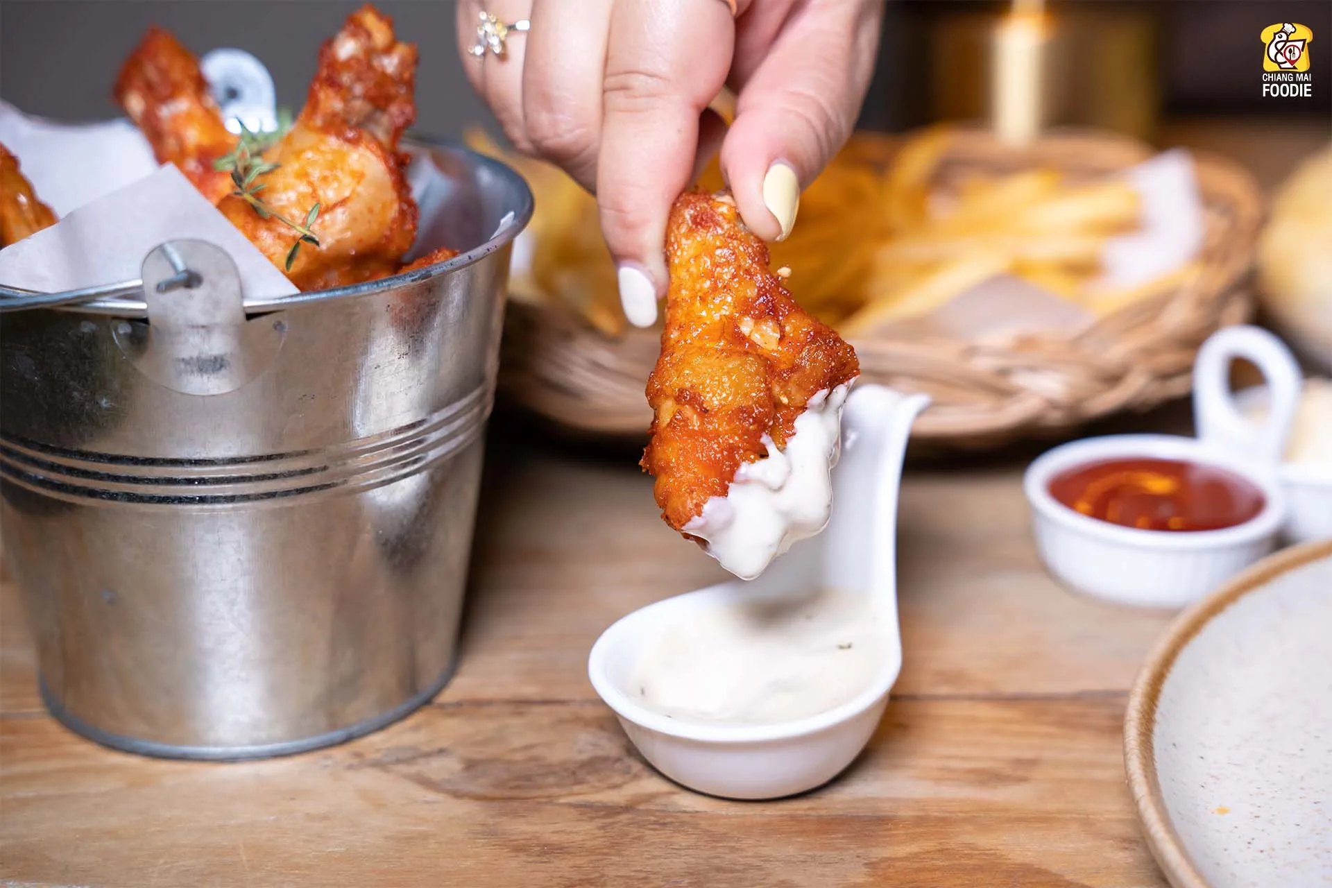 หรือใครจะบอกว่ามาทั้งที ขอมาดื่มมาดริ้งก็มีเครื่องดื่มให้แบบหลากหลายแบบหลายสัญชาติเลยจ้าาา จะให้แนะนำอาหารทานเล่นที่โดนใจ ก็ขอบอกว่าเป็น #ไก่นิวออลีนและบลูชีส นี่แหละอร่อยแย่งกันแบบหมดก่อนเครื่องดื่มแบบนั้นเลย ต่อด้วยสั่งเฟร้นช์ฟรายเพิ่มก็ยังเกลี้ยง ชอบตรงที่มาก่อนใครได้มองพระอาทิตย์ลับขอบฟ้าแล้ว ตัวร้านเค้ามีกรอบของตัวอาคารไว้เลย บอกเลยว่าร้านนี้ถ่ายรูปสวยทั้งสองโซน ใครอยากมาเช็คอินไวบ์เทสดีขนาดนี้ ก็ต้องแวะมาแล้วน๊าา