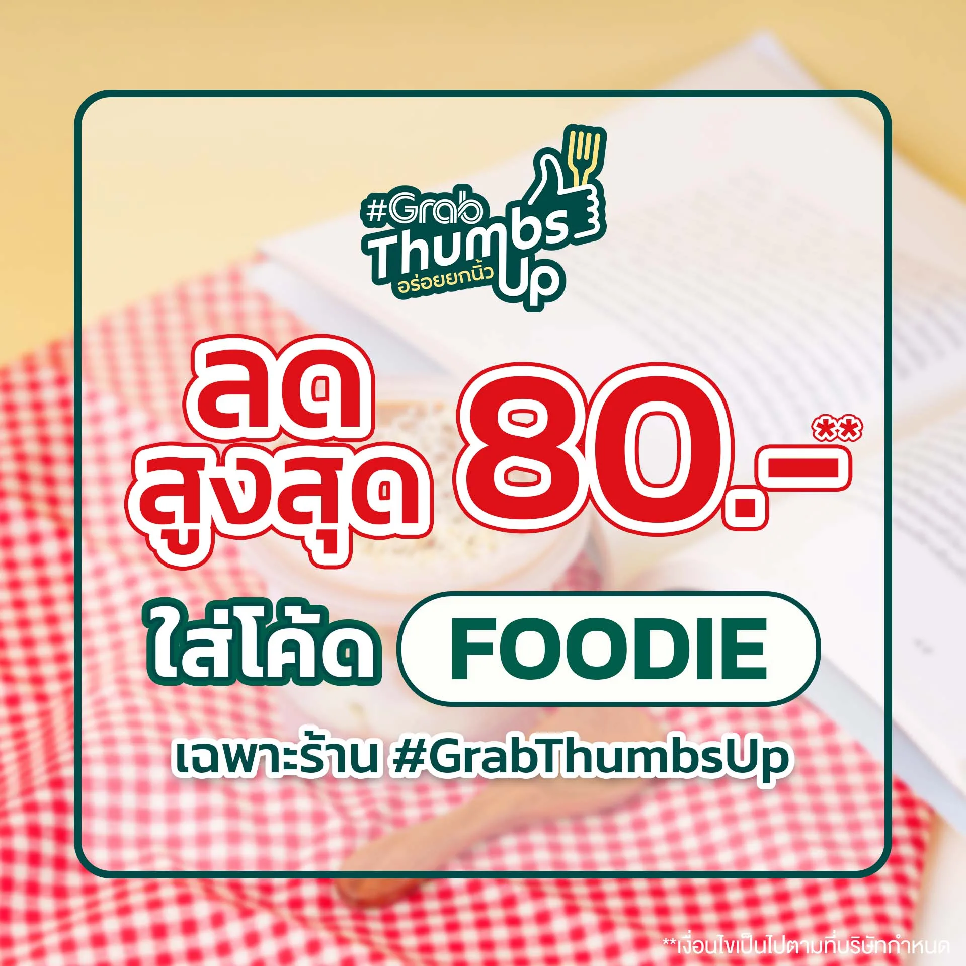 (โค้ดนี้ใช้ได้เฉพาะร้านที่อยู่ในไอคอน #GrabThumbsUp เท่านั้น)