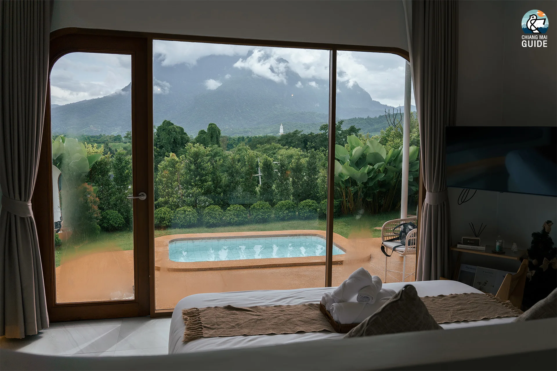ที่นี่มีห้องพักโทนอบอุ่น สะอาด เรียบง่ายในแบบมินิมอล สระว่ายน้ำส่วนตัว กลมกลืนไปกับธรรมชาติ เปิดหน้าต่างมาก็เห็นภูเขาและสายหมอกยามเช้าแบบพาใจสงบสุด ๆ 🍃มีเพียง 4 หลัง ราคาเริ่มต้นเพียง 4,990 บาทต่อคืน