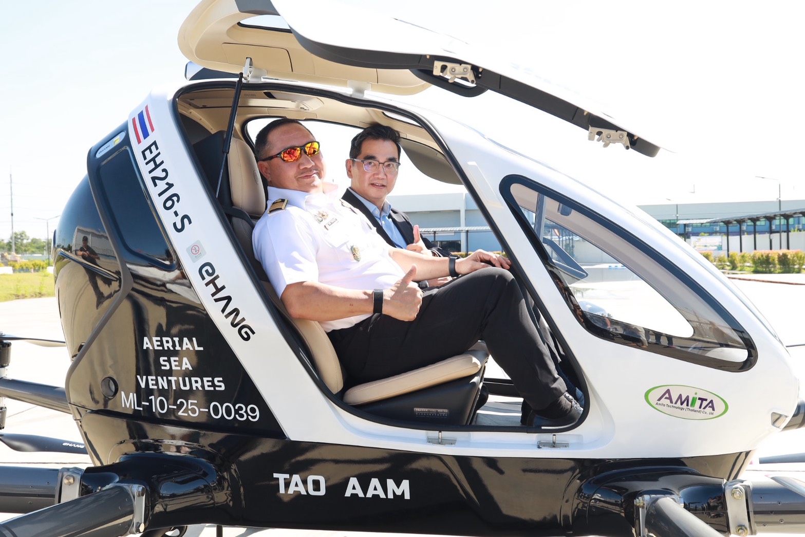 เมื่อวันที่ 15 ตุลาคม 2568 นายปัญญา ชูพานิช รองปลัดกระทรวงคมนาคม พร้อมด้วยพลอากาศเอก มนัท ชวนะประยูร ผู้อำนวยการสำนักงานการบินพลเรือนแห่งประเทศไทย (CAAT) และเจ้าหน้าที่จากฝ่ายมาตรฐานอากาศยานซึ่งไม่มีนักบิน เข้าร่วมรับชมการสาธิตการบินโดรนขนส่งผู้โดยสาร รุ่น EH216-S พัฒนาโดยบริษัท EHang Intelligent Equipment จากประเทศจีน ซึ่งได้จัดกิจกรรมร่วมกับบริษัท ซีเอชอีซี (ไทย) จำกัด (CHEC) ณ บริษัท อมิตา เทคโนโลยี (ประเทศไทย) อำเภอบางปะกง จังหวัดฉะเชิงเทรา