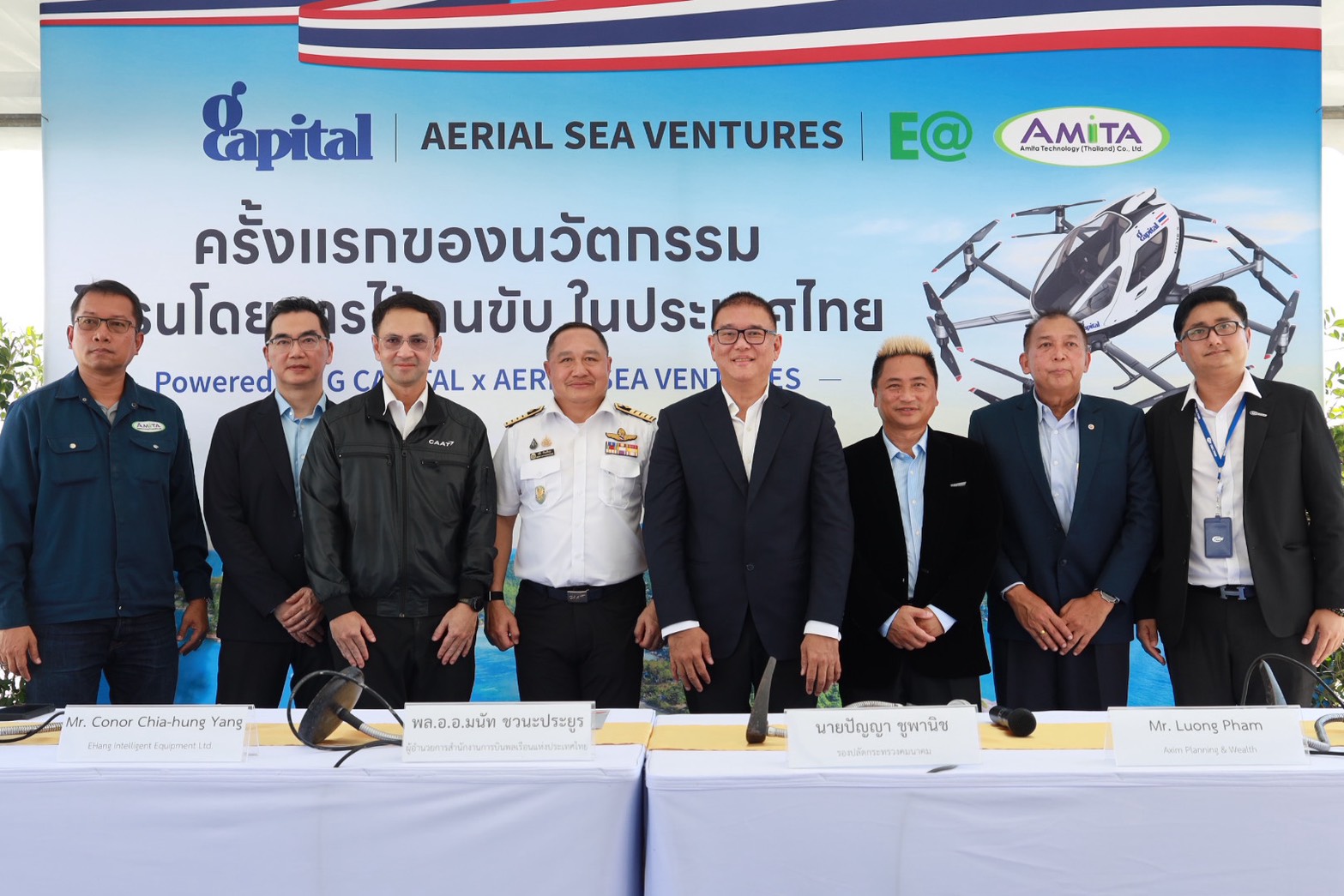 ในส่วนของภาคเอกชน บริษัท จี แคปปิตอล จำกัด (มหาชน) หรือ GCAP ร่วมกับบริษัท เต่า เอเอเอ็ม จำกัด (TAO AAM) ซึ่งเปิดตัวโดรนเพื่อการขนส่งผู้โดยสารรุ่น EH216-S และจัดการสาธิตการบินในประเทศไทย โดยมีแผนนำมาให้บริการในอนาคตในพื้นที่ท่องเที่ยวหลัก ได้แก่ พัทยา ภูเก็ต สมุย เกาะพะงัน และเกาะเต่า รวมถึงแหล่งท่องเที่ยวอื่นที่มีศักยภาพ เพื่อยกระดับประสบการณ์การเดินทางรูปแบบใหม่ที่รวดเร็ว ปลอดภัย และเป็นมิตรต่อสิ่งแวดล้อม โดยหลังจากนี้บริษัทฯ จะต้องทำงานร่วมกับ CAAT ในกระบวนการรับรองด้านต่างๆที่เกี่ยวข้องกับความปลอดภัยด้านการบิน