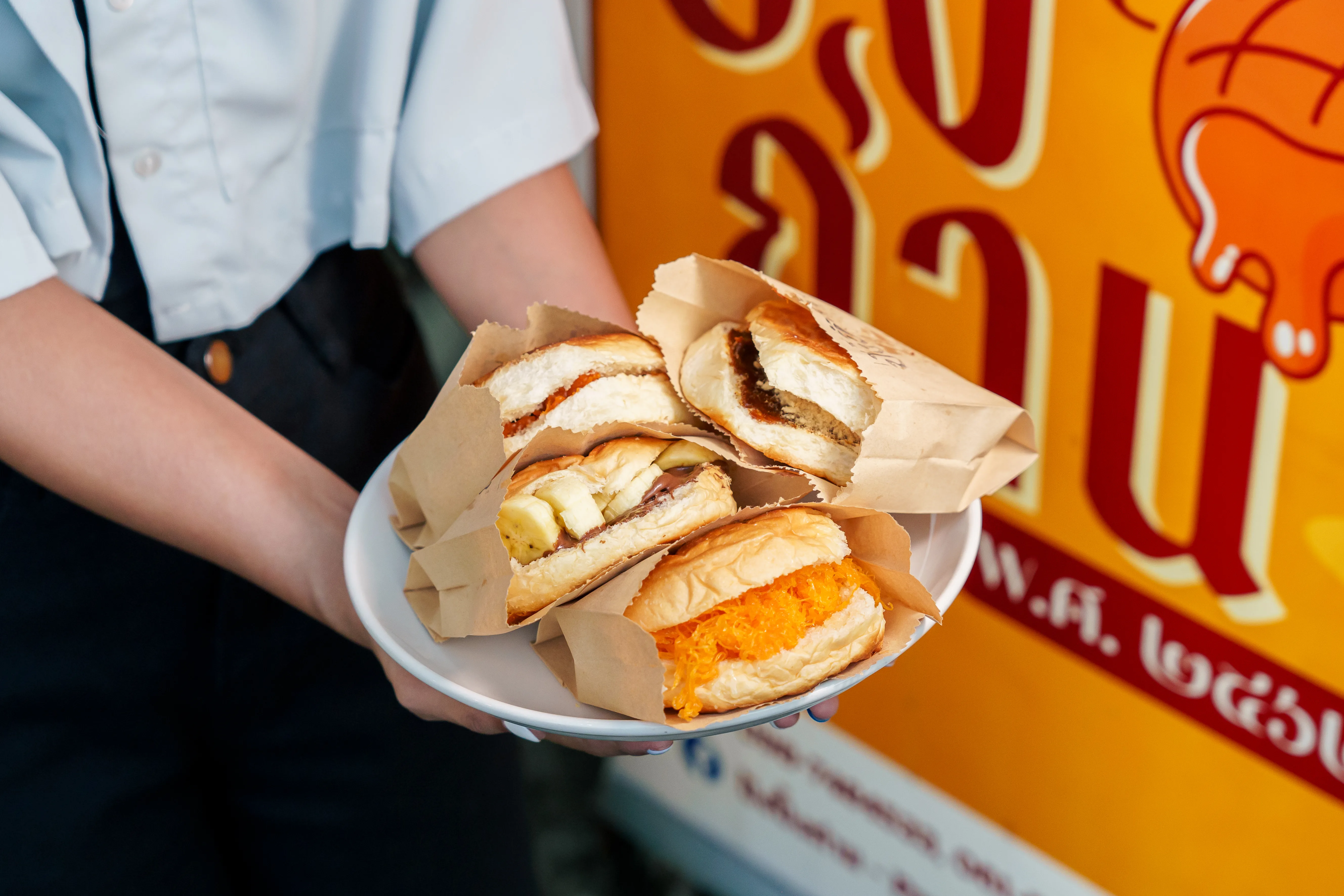 มีให้เลือกหลายไส้ ทั้งเนย+นม, ชาไทย, นูเทลล่ากล้วย, ฝอยทอง+นม และอีกเพียบ!
