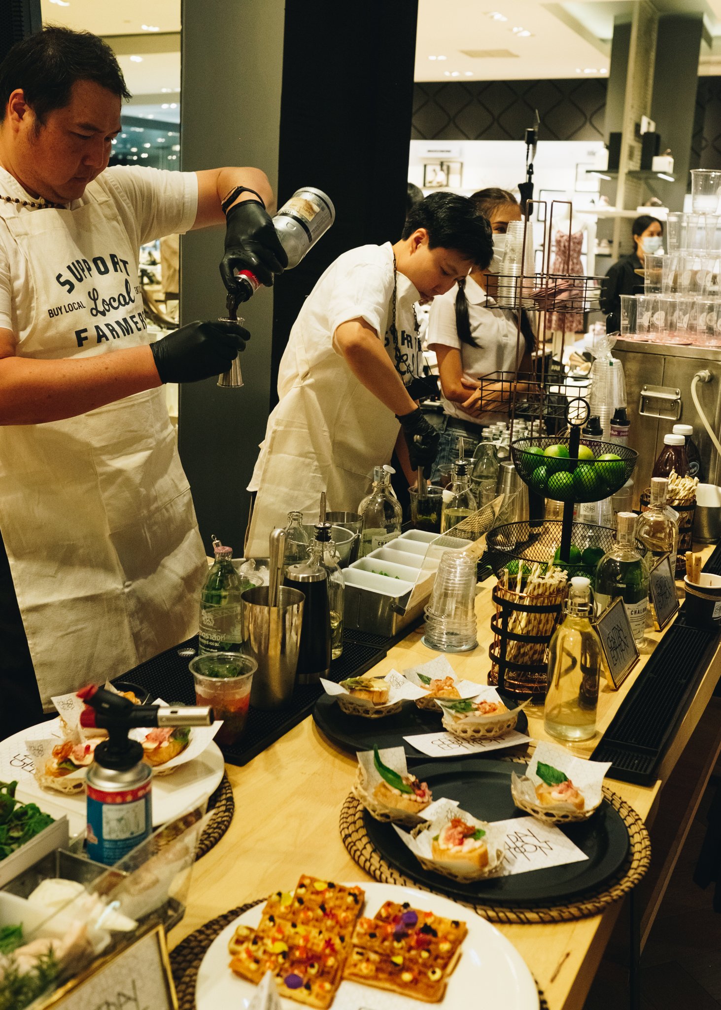 ภายในงาน เนรมิตบรรยากาศของ ป๊อป-อัพ สโตร์ ให้มีกลิ่นอายของความเป็นท้องถิ่นและความเป็นธรรมชาติ ซึ่งออกแบบโดยสตูดิโอ Salt & Pepper ที่ได้แรงบันดาลใจมาจากงานจักสานซึ่งเป็นหนึ่งในวัฒนธรรมพื้นบ้านของไทย โดยใช้ฟอร์มของก้อนหินที่ถูกลดทอนรายละเอียดให้ดูเรียบง่ายสไตล์มินิมอล บวกการใช้วัสดุหลักเป็นไม้ ที่สามารถถอดประกอบได้แบบโมดูลาร์ ให้ทุกคนที่มาร่วมงานสัมผัสได้ถึงไอเดียเพื่อความยั่งยืน