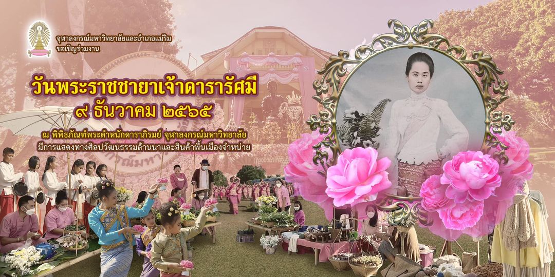 พิพิธภัณฑ์พระตำหนักดาราภิรมย์ เรียนเชิญทุกท่านเที่ยวชมงานวันพระราชชายาเจ้าดารารัศมี ประจำปี 2565 วันศุกร์ที่ 9 ธันวาคม 2565 ตั้งแต่เวลา 09.30 น.เป็นต้นไป ณ พิพิธภัณฑ์พระตำหนักดาราภิรมย์ อ.แม่ริม จ.เชียงใหม่