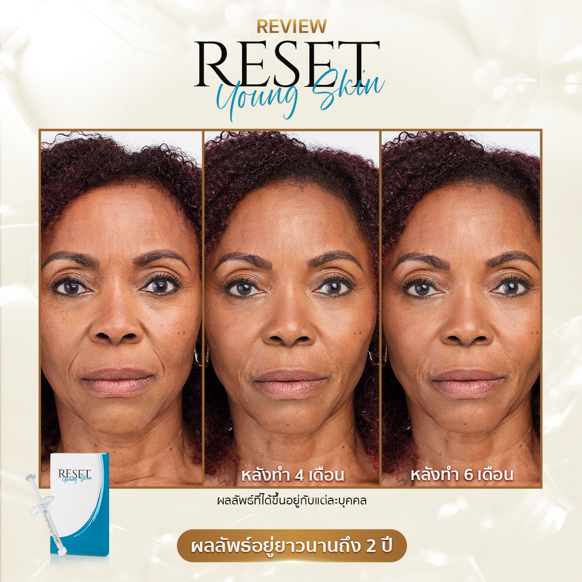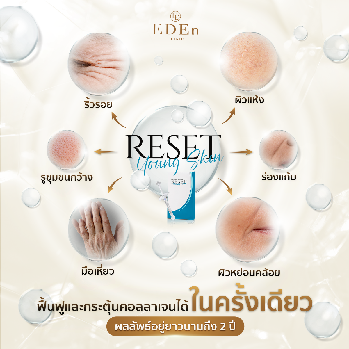 RESET ผิวเด็ก นวัตกรรมดูแลผิวระดับโลก เมื่อเราอายุมากขึ้น โครงสร้างผิวก็จะเสื่อมสภาพลงไปด้วย องค์ประกอบผิวต่าง ๆ จะลดลง ไม่ว่าจะเป็น คอลลาเจนและอีลาสติน อีกทั้งยังมีปัจจัยภายนอกอื่นๆที่คอยทำร้ายผิว ไม่ว่าจะเป็นแสงแดดที่เป็นตัวการทำร้ายผิว ทำให้ผิวแก่ หรือ พฤติกรรมในชีวิตประจำวันทำร้ายผิว เช่น การแต่งหน้า หรือ การเช็ดถูหน้าแรงๆ เช็ดเครื่องสำอางแรงๆ ทำให้ส่งผลให้ผิวมีริ้วรอย ผิวหย่อนคล้อย และไม่กระชับ ทำให้ต้องหาวิธี Reset ผิวตัวเองให้คืนผิวเด็ก เฟิร์ม นุ่ม เด้ง ฟื้นฟูโครงสร้างผิว ชั้นลึก ที่ช่วยให้ผิวยกกระชับ คืนความแข็งแรง, ความยืดหยุ่น, ฟื้นคืนคุณภาพผิวให้ดูอ่อนเยาว์ลง