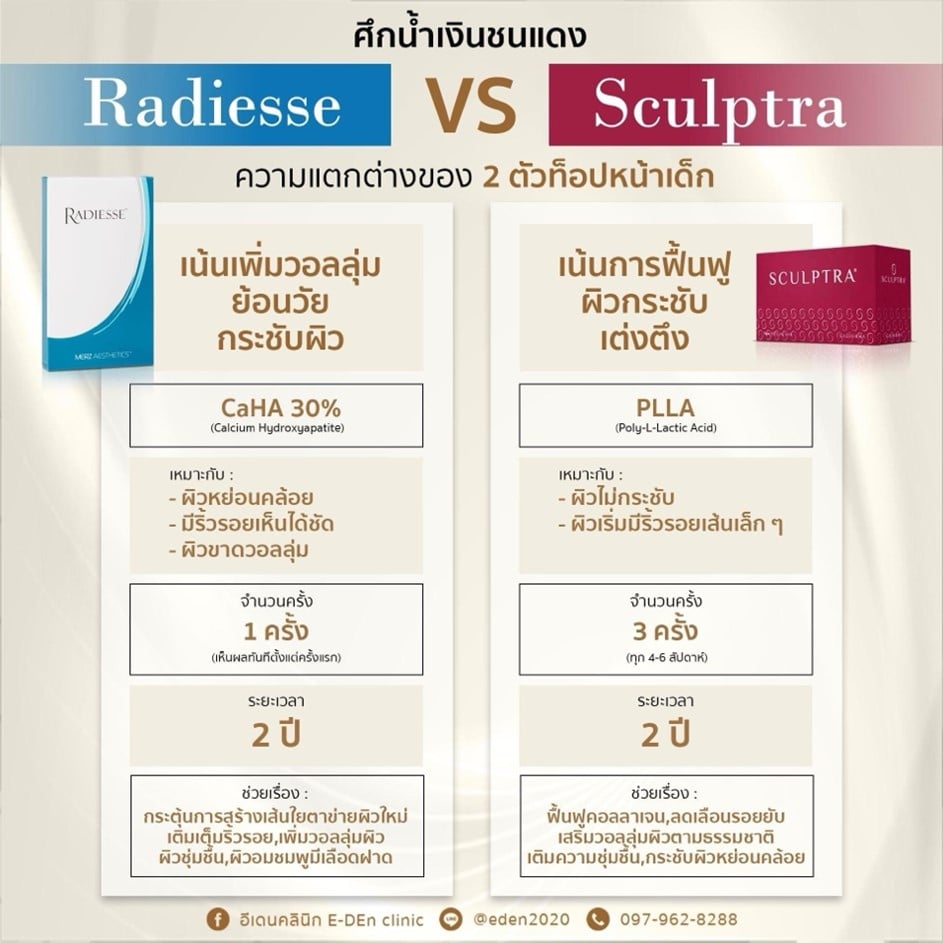 ที่กำลังมาแรง แบบฉุดไม่อยู่ในตอนนี้ ที่อีเดนคลินิกเรามีแพทย์ ผู้เชี่ยวชาญ ที่ศึกษา ฝึกฝน และเก็บเกี่ยวประสบการณ์มาอย่างยาวนาน จึงสามารถวิเคราะห์ปัญหาบนใบหน้าได้ เป๊ะ ตรงจุด และถูกต้องที่สุด ฉีกทุกกฎของFiller เพราะทำหน้าที่ได้ เท่ากับFillerทุกอย่าง แต่เหนือกว่าตรงที่สามารถ เติมเต็ม ยกกระชับ และกระตุ้นการผลิตของคอลลาเจนใต้ผิวหนังของเราเองขึ้นมาใหม่ตามธรรมชาติ อย่างปลอดภัย ทั้งนี้ เพื่อทดแทนคอลลาเจนที่สูญเสียไปตามอายุ นับได้ว่าเป็นอีกหนึ่งทางเลือกในการช่วยฟื้นฟูโครงสร้างผิว ชั้นลึก ที่ช่วยให้ผิวยกกระชับ คืนความแข็งแรง, ความยืดหยุ่น, ฟื้นคืนคุณภาพผิวให้ดูอ่อนเยาว์ลงอีกด้วย