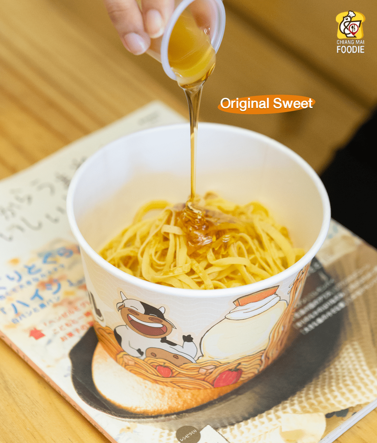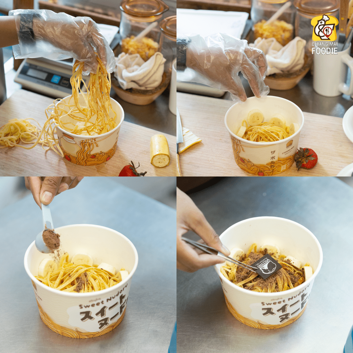 เพราะเมนูนี้ไม่เคยเห็นที่ไหนมาก่อน แปลกแหวกแนวสุดๆ แปลกใหม่ยังไงน่ะหรอ ก็เมนูนี้เค้าให้ใช้ตะเกียบกิน ขนมมาในรูปแบบเส้นที่ใส่มาในถ้วยจับถนัดมือ แถมหอมละมุน อร่อยมากก สายขนมสายอัพสตอรี่ห้ามพลาดเด็ดขาด!!