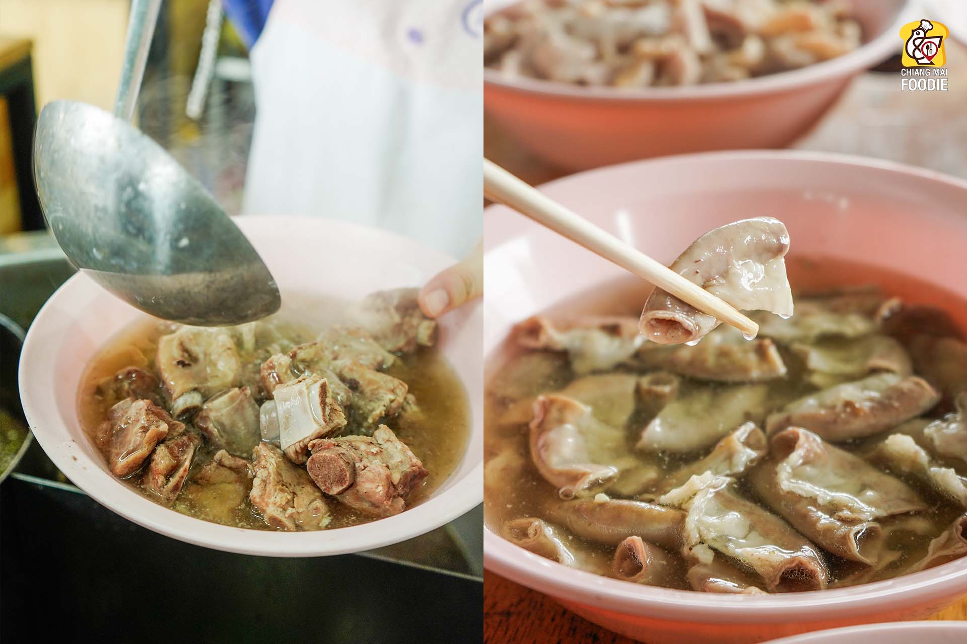 แล้วทีมหมูก็มีความโดดเด่นเป็นทั้งตัวซี่โครงตุ๋น กระดูกอ่อนตุ๋น อร่อยตั้งแต่ตัวเนื้อไปถึงลูกชิ้นทั้งสองแบบเลย มีให้เลือกทั้งแบบก๋วยเตี๋ยว เกาหลา หม้อไฟ ข้าวหน้าเนื้อตุ๋น ข้าวหน้าหมูตุ๋น ยำเกี๊ยวกรอบ