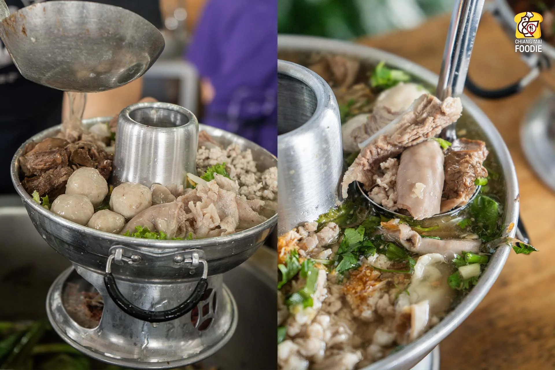 เคล็ดลับความอร่อยที่อยากบอกต่อคือทั้งเนื้อตุ๋น หมูตุ๋นของที่ร้านเค้าตุ๋นเกิน 8 ชั่วโมงเพื่อความเปื่อยยยย หนึบหนับกำลังดี โดยเฉพาะตัวเอ็นเนื้อที่แอดมินเจ่เจ้ขอใช้สิทธิ์เชียร์เป็นพิเศษ แบบอร่อยแสงออกปาก ที่สำคัญ ร้านนี้มีม้ามด้วยจ้าแม่ เลิฟจัดๆ เล้ยยย ของโปรดมารวมกันอยู่ในชามในหม้อ ที่สำคัญคือเปิดร้านใหม่ ฟรี เกี๊ยวทอดกรอบ เมื่อแอดไลน์ร้าน