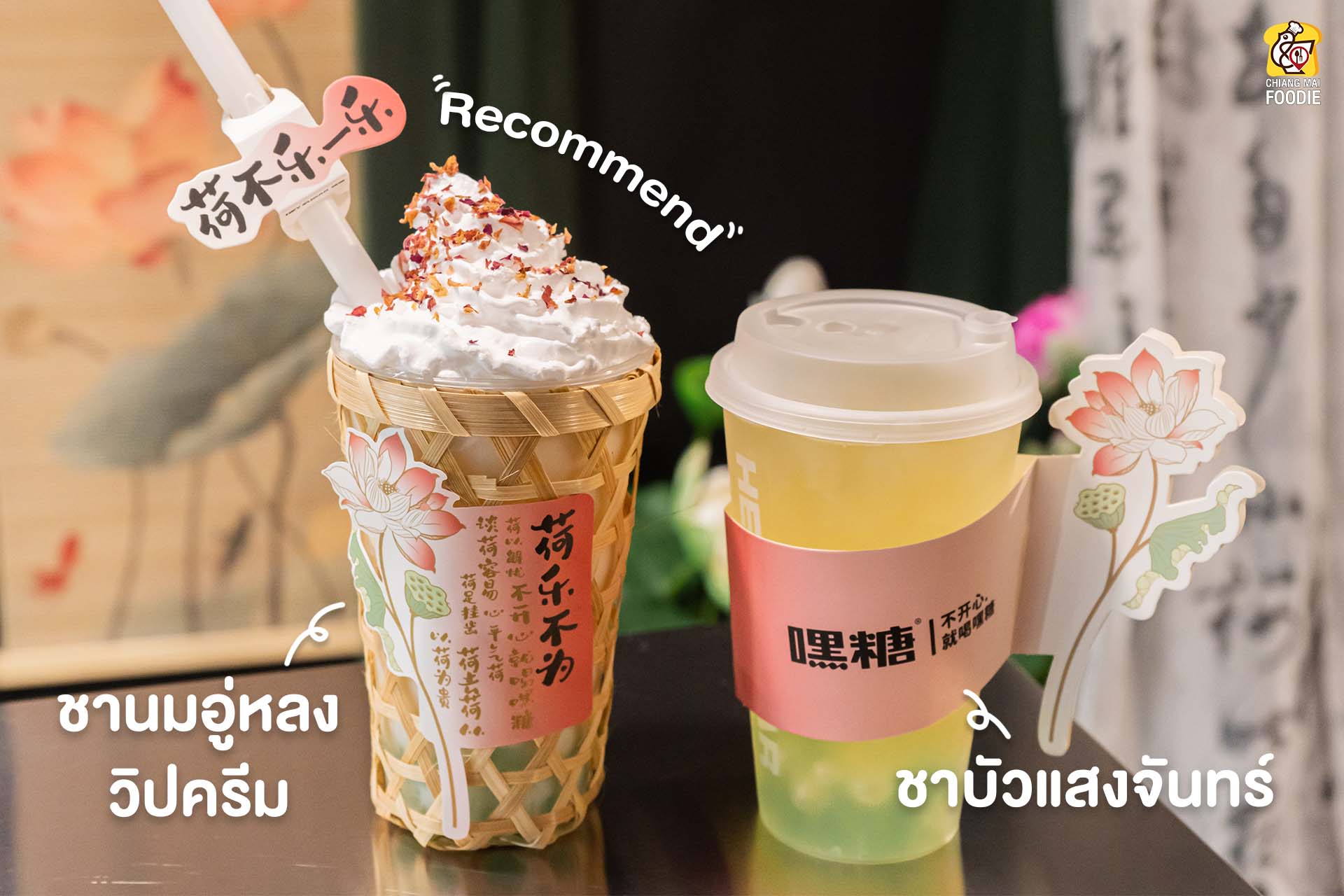 เริ่มด้วยชานมอู่หลงวิปครีม ชาบัวแสงจันทร์ที่จะมีความหอมเป็นเอกลักษณ์เฉพาะตัว ชานมโมจิข้าวเหนียวดำ ได้ความหนึบเคี้ยวเพลิน อย่างที่บอกว่าเครื่องดื่มที่นี่เป็นแบบหวานน้อย ใครมักหวานร้อยขอเพิ่มได้นะ