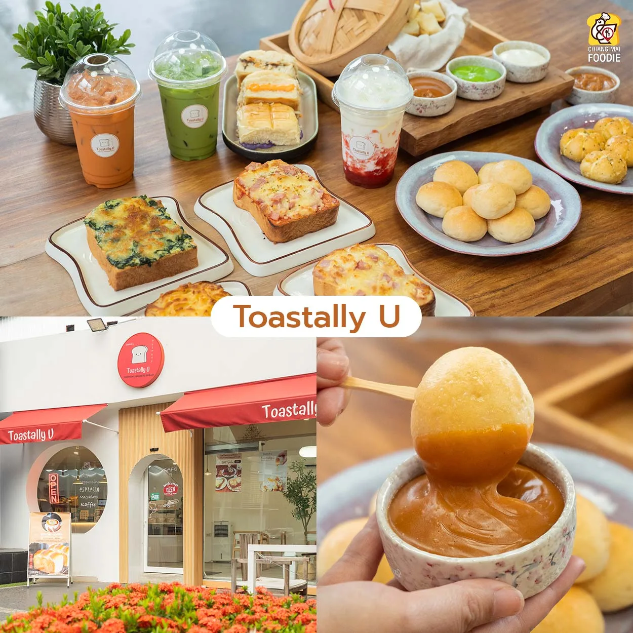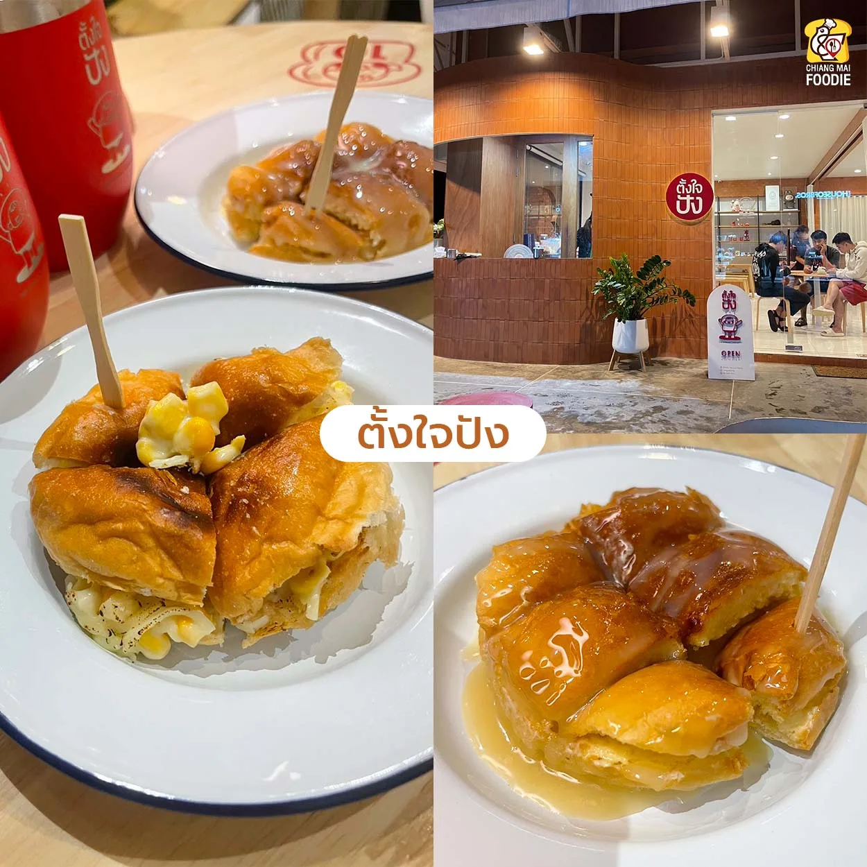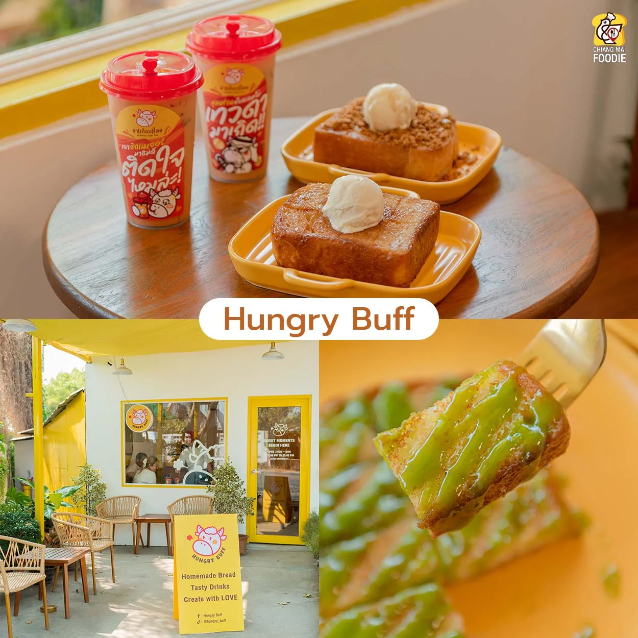 ร้านขนมปังย่านสันทราย ซึ่งมีเมนูซิกเนเจอร์คือ ‘บัฟบัตเตอร์’ ขนมปังแผ่นหนาโรยด้วยบิสคอฟคุกกี้เสิร์ฟพร้อมไอศกรีมวนิลา บอกเลยว่าเมนูนี้นัว ส่วนอีกเมนูที่ห้ามพลาดคือ ‘เนยหนึบบัตเตอร์‘ อร่อยมากกก