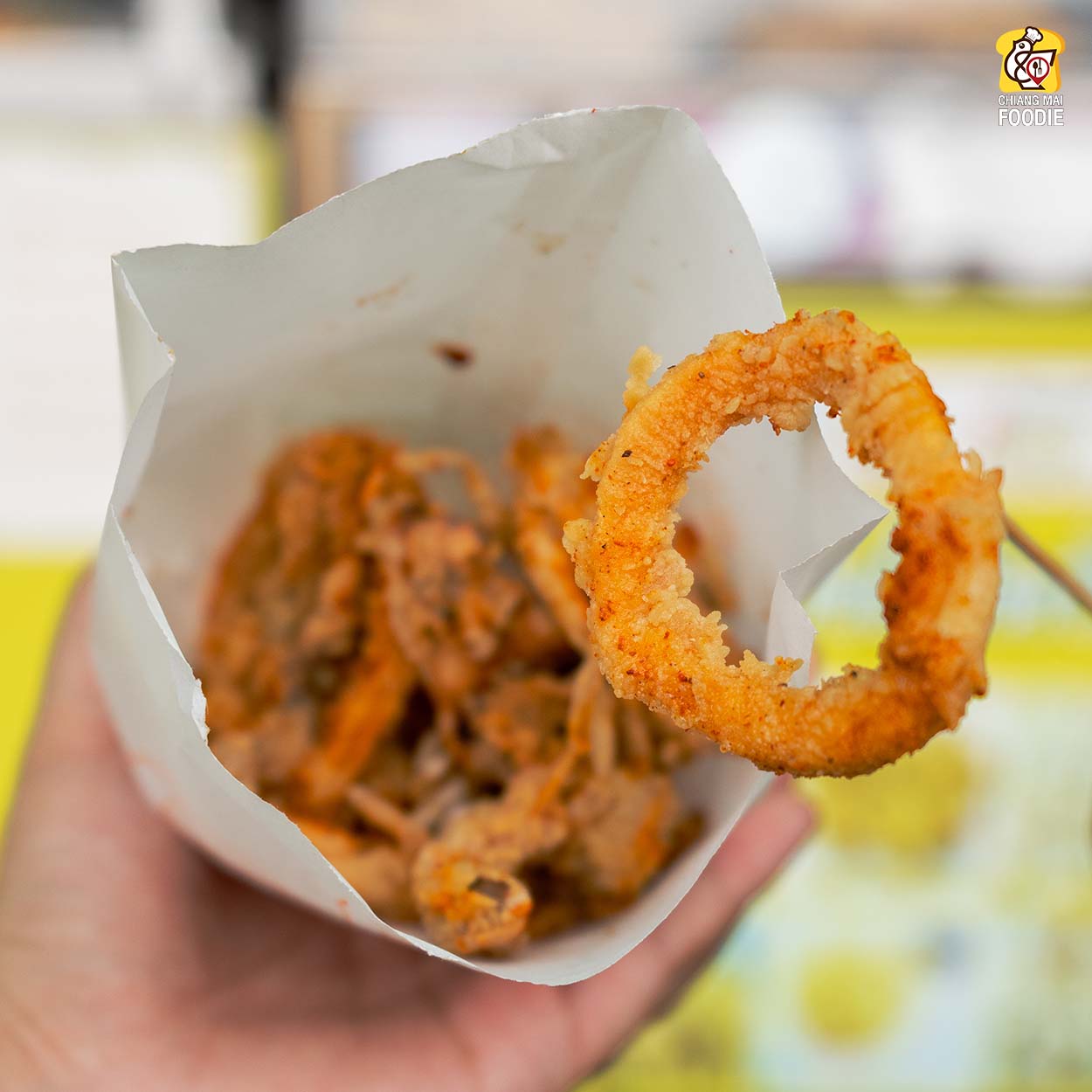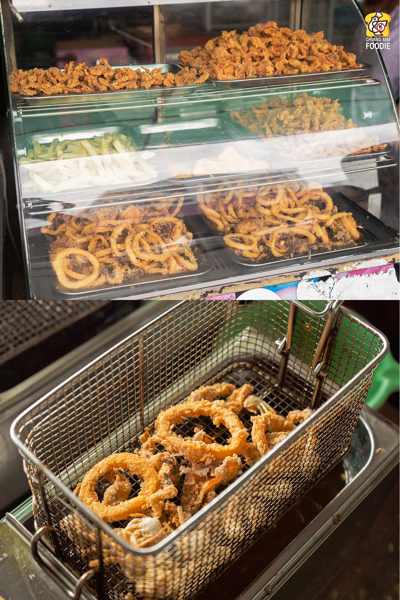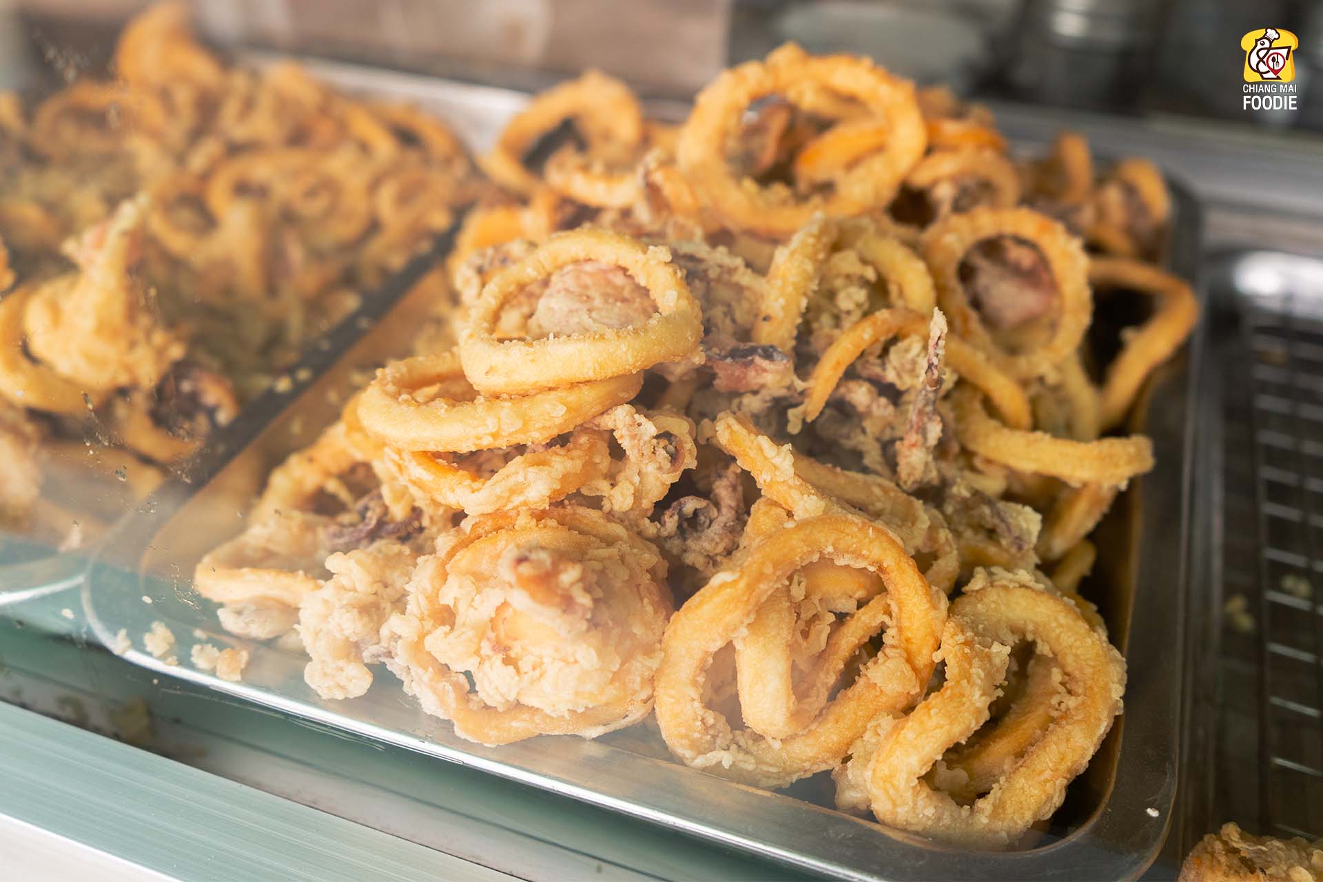 ร้านของทอดสูตรไต้หวัน เจ้าแรก ๆ ในเชียงใหม่ ทอดกรอบ ๆ ไม่เหนียว ไม่แข็ง พร้อมโรยผงปรุงรสตามแบบฉบับไต้หวัน กรุบกรอบที่แอบมีความนัวเล็ก ๆ ของผง อร่อยมากกก สำหรับเมนูมีทั้ง ไก่ทอด, เอ็นไก่ทอด, ปลาหมึกทอด และที่แอดชอบสุดคือ “ปูทอด“ เพิ่งเคยทานครั้งแรก แต่ชอบมากกก ปูที่ถูกกรอบ ๆ เคี้ยวเพลินสุด ๆ ใครได้แวะไปกาดธานินทร์บอกเลยว่าต้องแวะ!!!