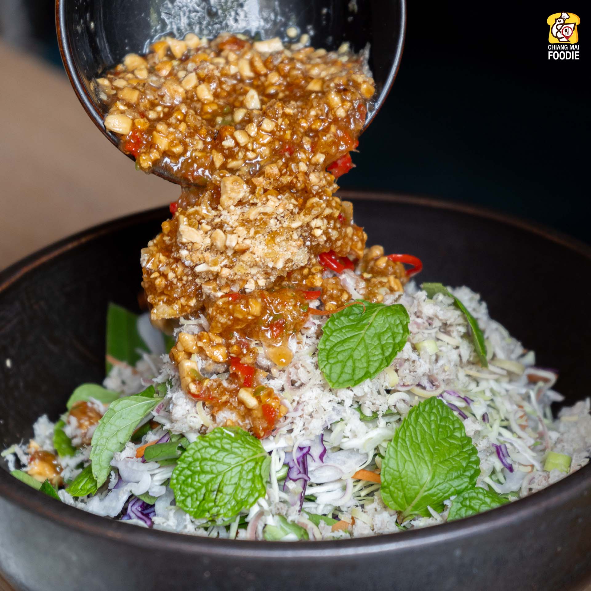 #ปลาพล่าน้ำจิ้มถั่วตัด ที่เป็นเอกลักษณ์ที่กรรมวิธีการทำแบบเฉพาะของทางร้าน ตอนทานก็ราดตัวปลาพล่าน้ำจิ้มถั่วตัดลงไปบนผักสดพร้อมกับคลุกเคล้ากัน รู้มาว่าหมัดเด็ดของน้ำจิ้มก็คือน้ำปลาท้องถิ่นของจันทบุรีอย่างน้ำปลาแท้สามกระต่าย ใครที่เคยทานจะรู้ว่าให้ความหอมกลมกล่อมไม่เหมือนใคร บอกเลยว่าเป็นการทานผักที่บันเทิงมาก อร่อยถูกปากเลยทีเดียวค่ะ